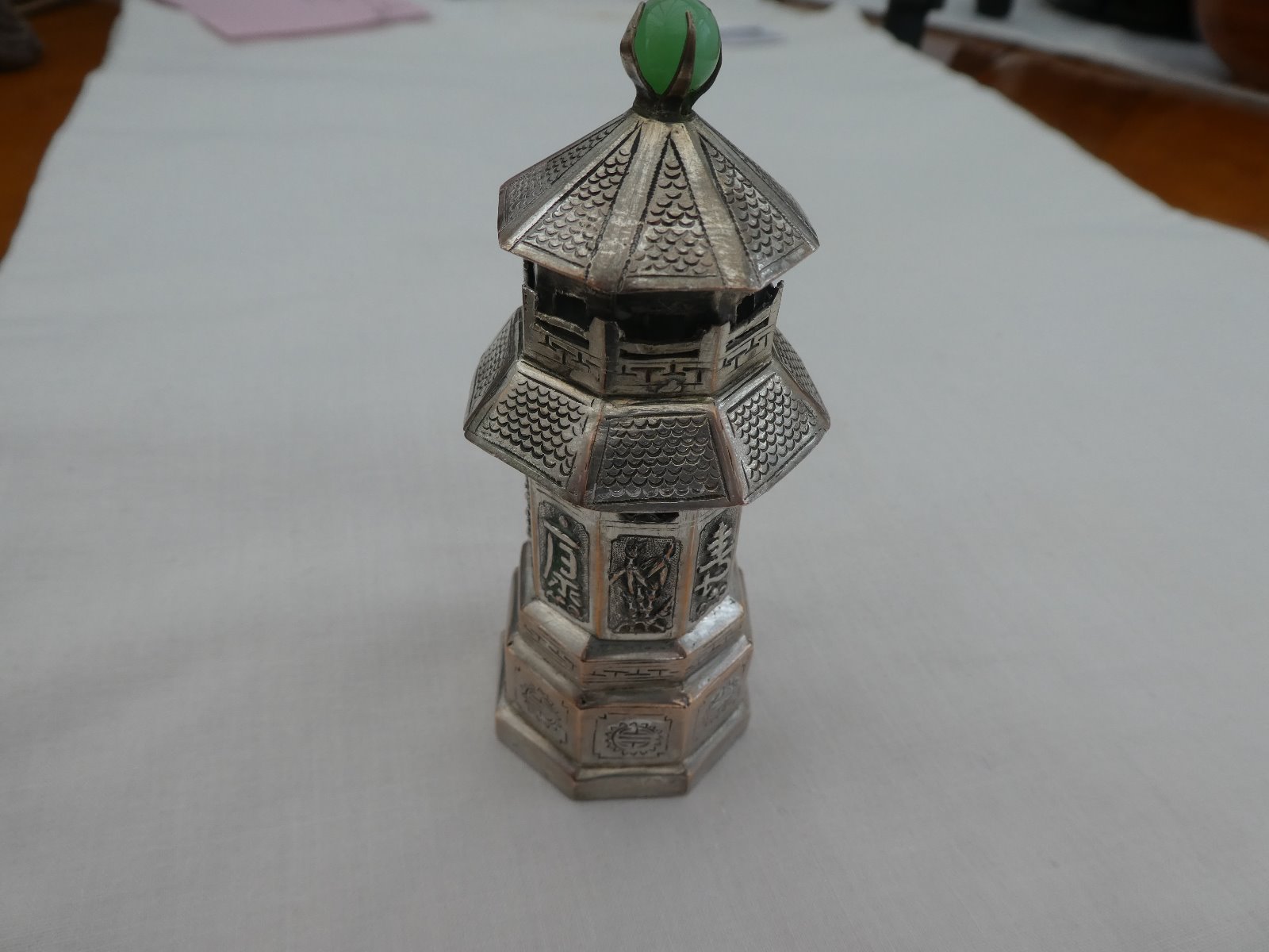 Chinese Silver Plated Pagoda Pepper or Spice Shaker