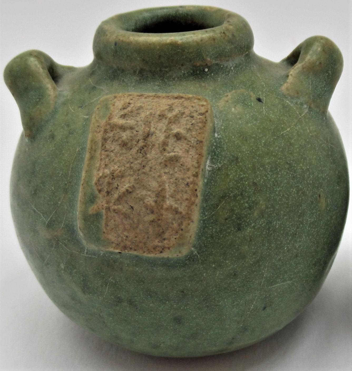 Chinese small jarlet with handles and inscribed tablet, Ming Dynasty, c1500