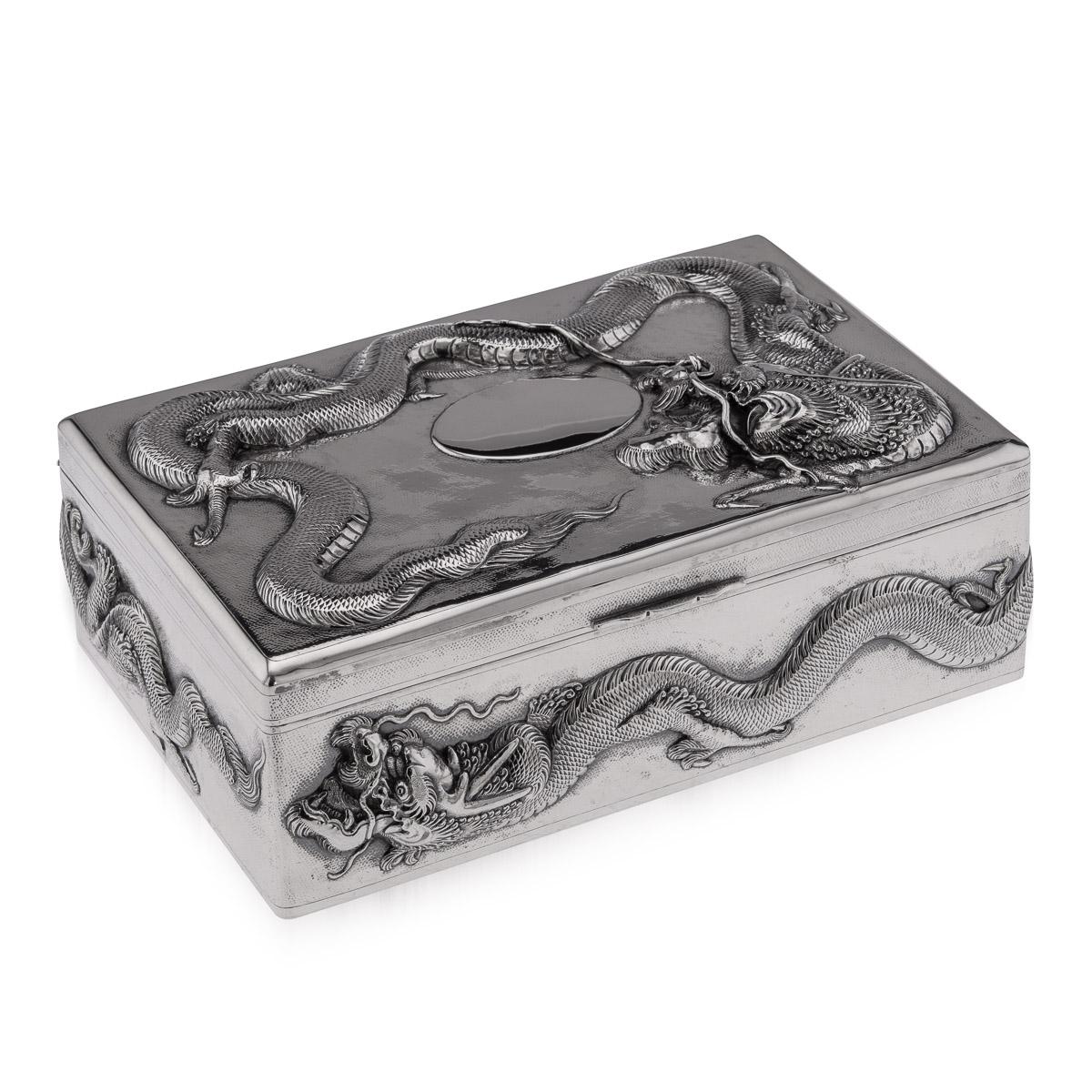 Chinese Solid Silver Dragon Cigar Box c.1900