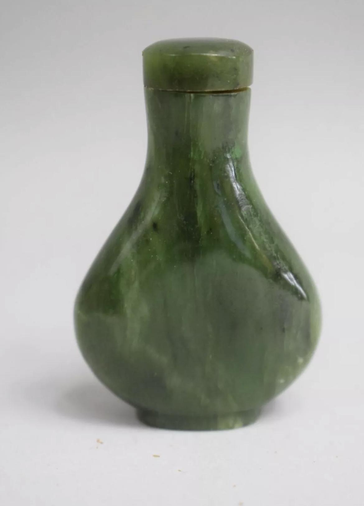 Chinese Spinach Green Jade Snuff Bottle of Flattened Pear Shape