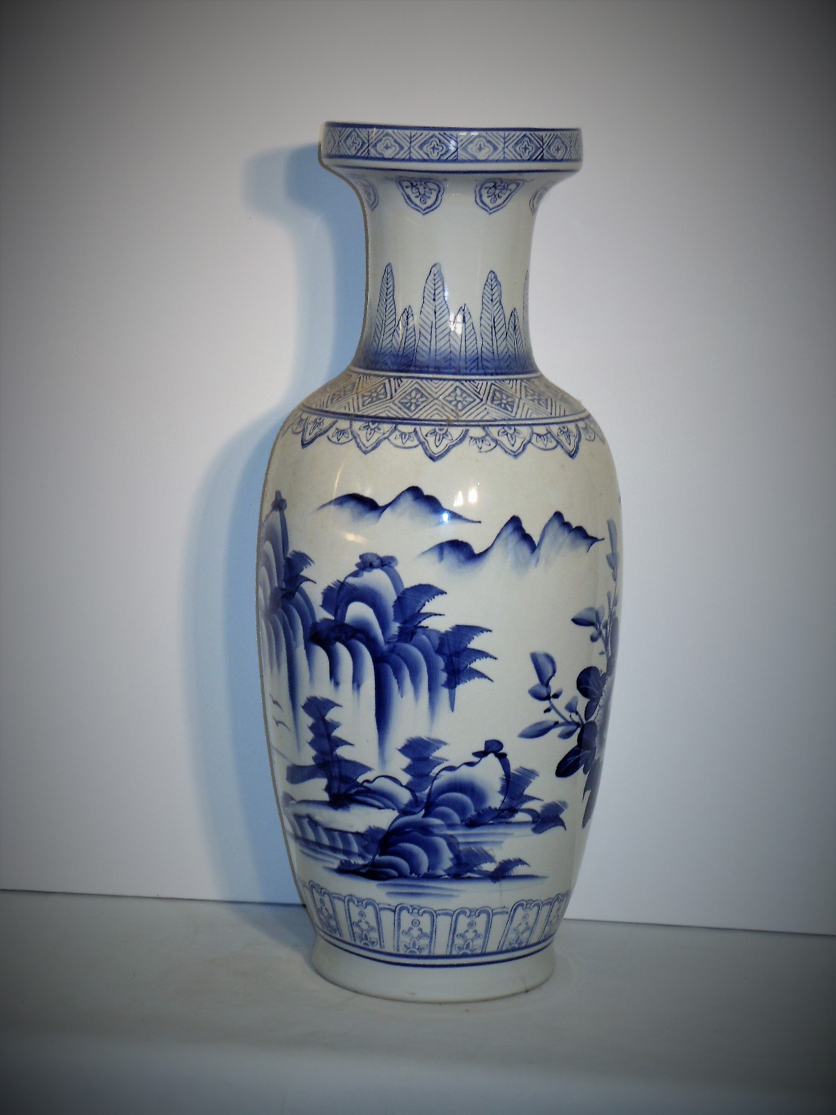 Chinese Tall Blue & White Vase C.1912
