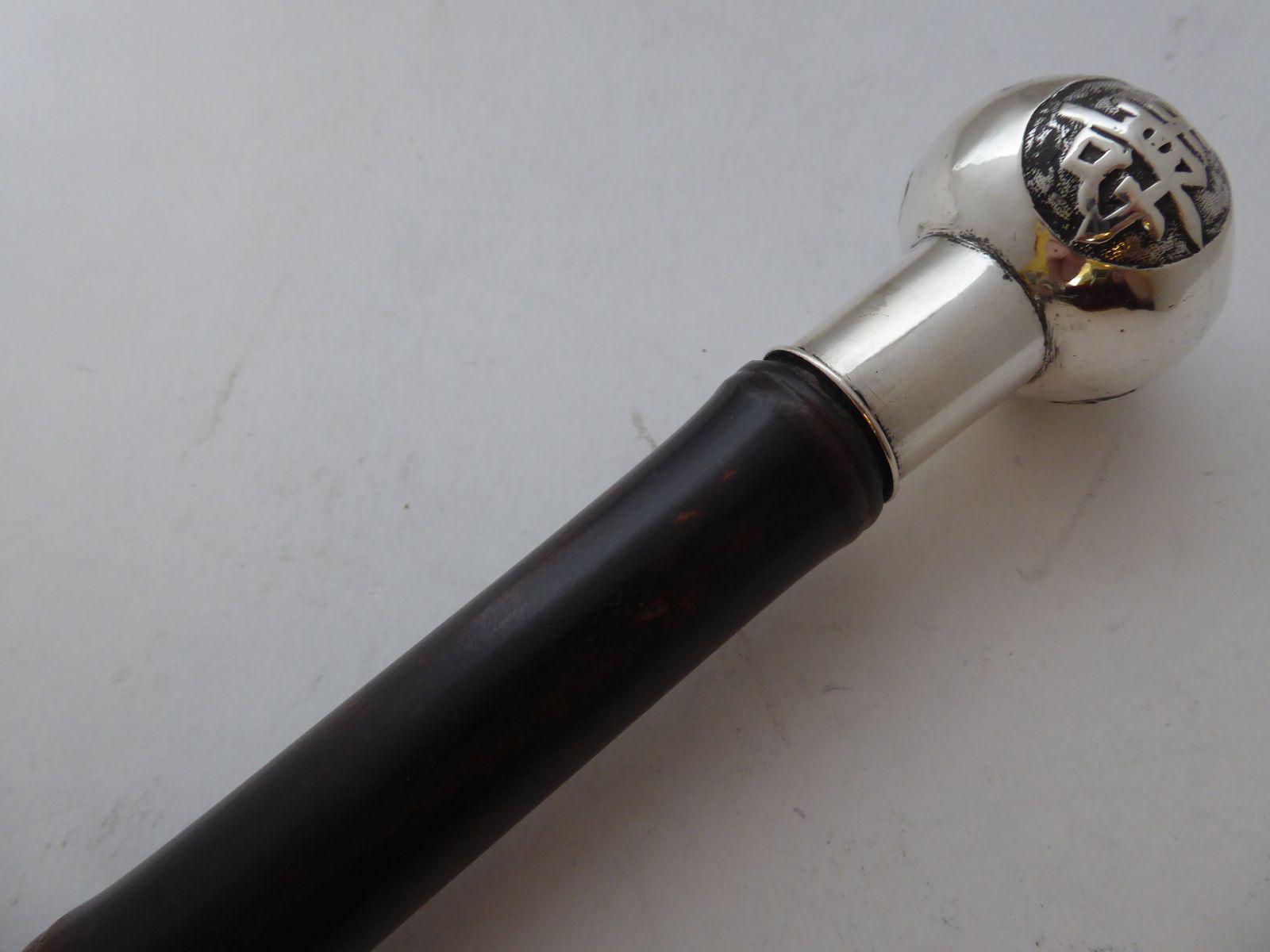 Chinese Walking Stick Cane Solid Silver Pommel Bamboo Wood Shaft c.1900