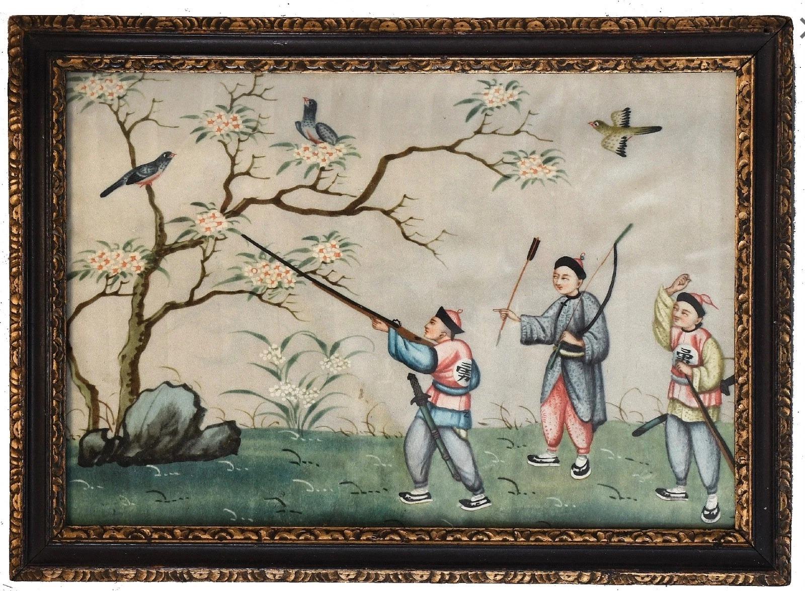 Chinese Watercolour on Silk Hunting Birds 19th Century (1 of 8)