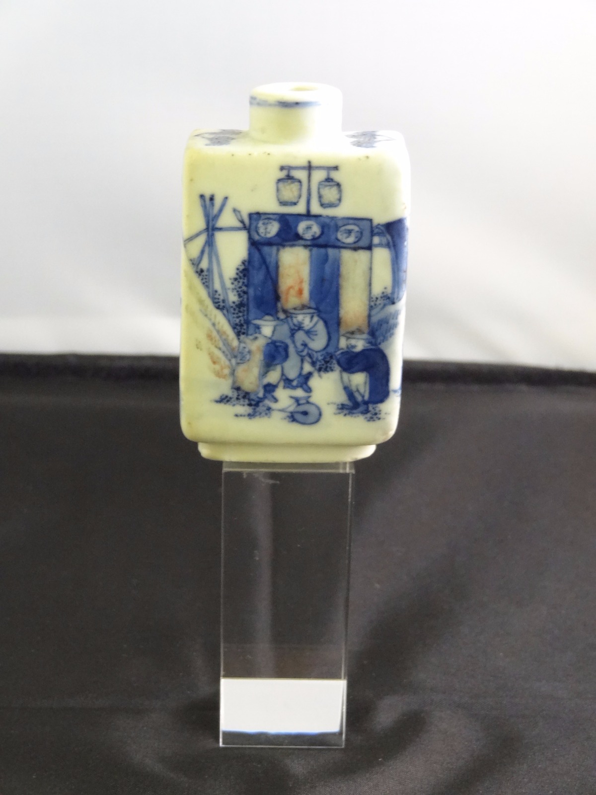 Chinese White Porcelain Rectangular Snuff Bottle, Decorated On Both Sides, circa Late 19th Century