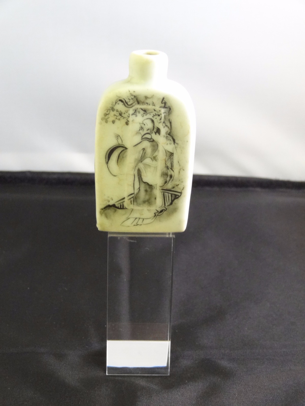 Chinese White Porcelain Rectangular Snuff Bottle, Painted En Grisaille, circa Late 19th Century