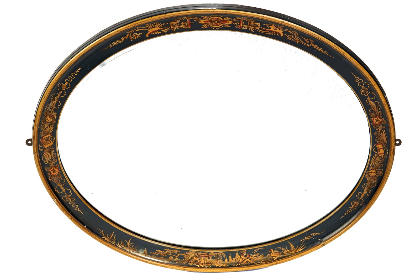 Chinoiserie Decorated Oval Bevelled Wall Mirror c.1920