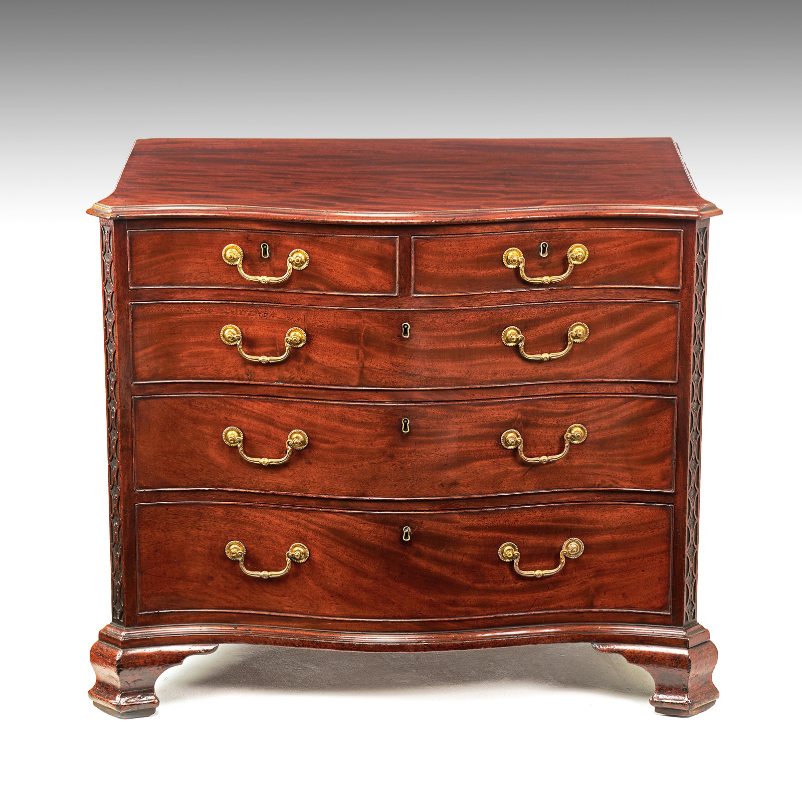Chippendale Period 18th Century Serpentine Georgian Mahogany Chest of Drawers