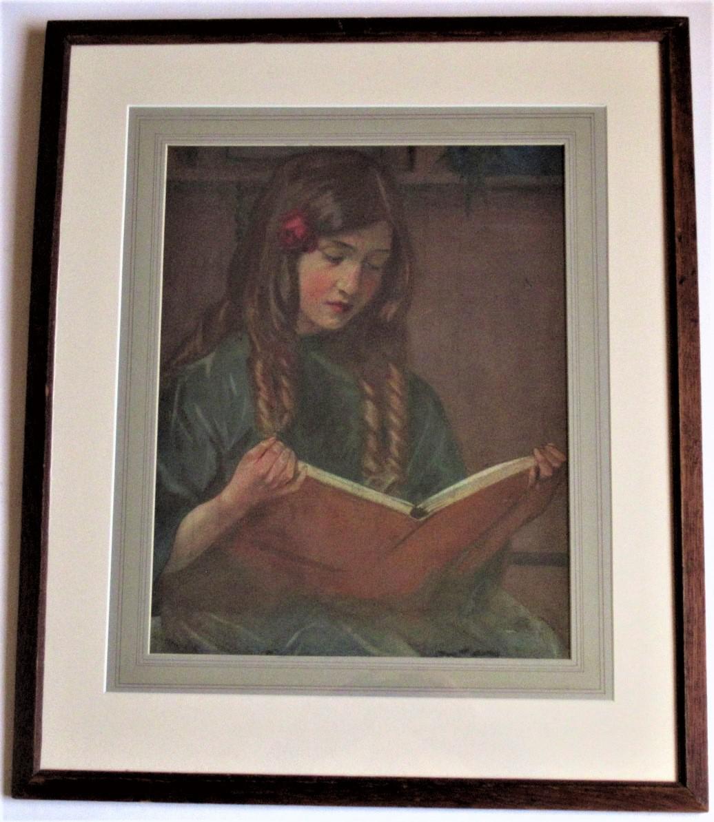 Christine McGregor, Girl Reading, pastel on board, c1918, signed, period frame