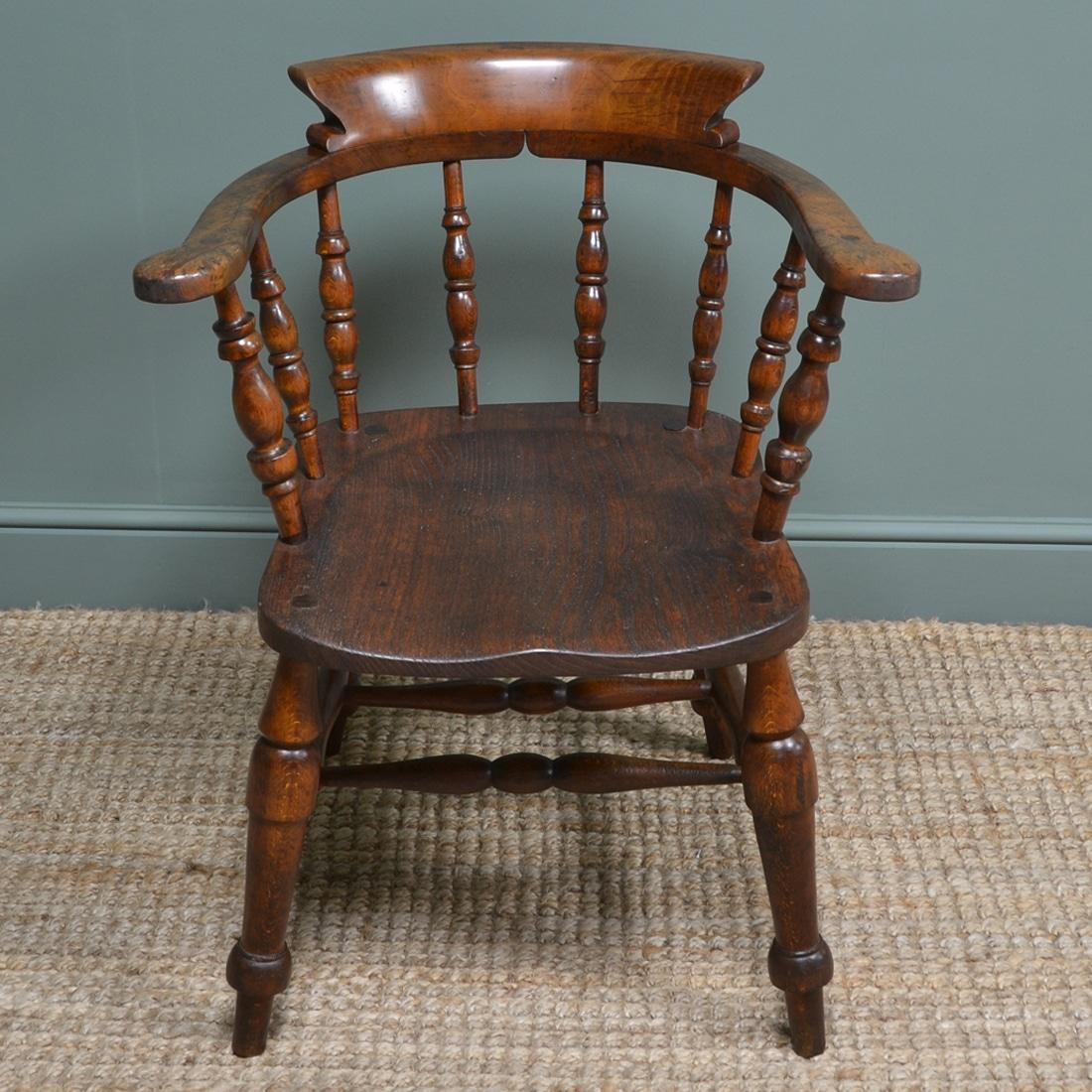 Chunky Victorian Elm Smokers Bow Antique Armchair