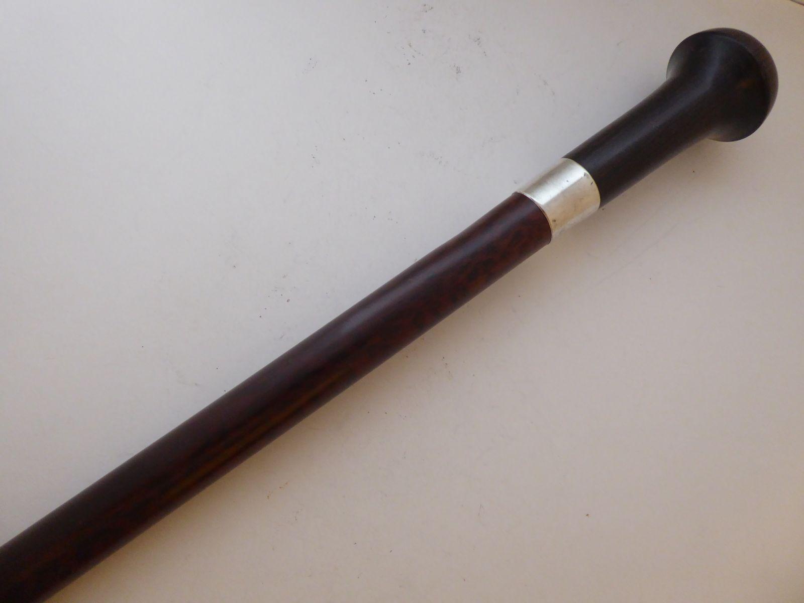 Circa 1890 Walking Stick Cane Solid Silver Collar Snakewood Shaft Blackwood Pommel