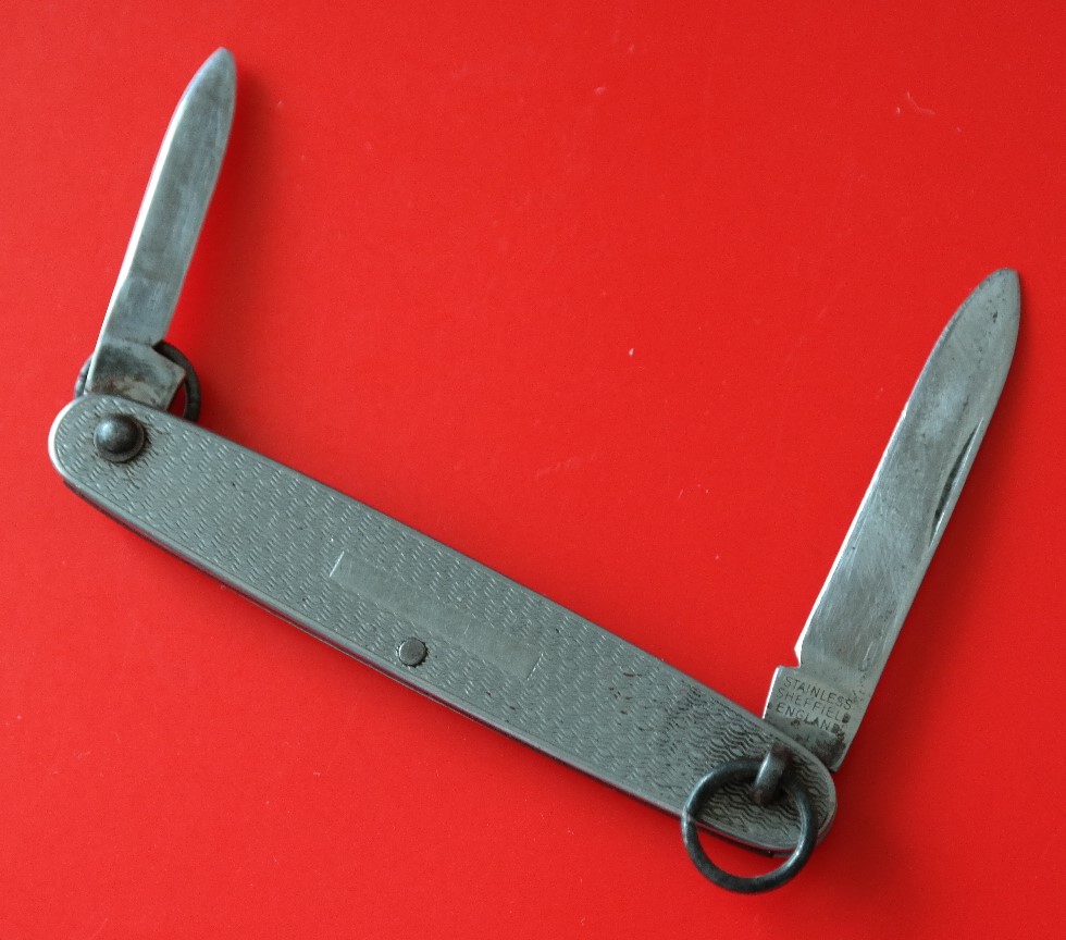 Circa:-1930s Stainless Steel Twin Bladed Ring Pull Pen Knife - Knives / Collectable
