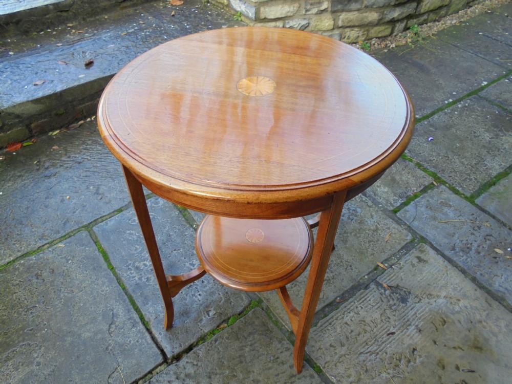 Circular Mahogany Two Tier Occasional Table with Sunburst Inlay on Each Level