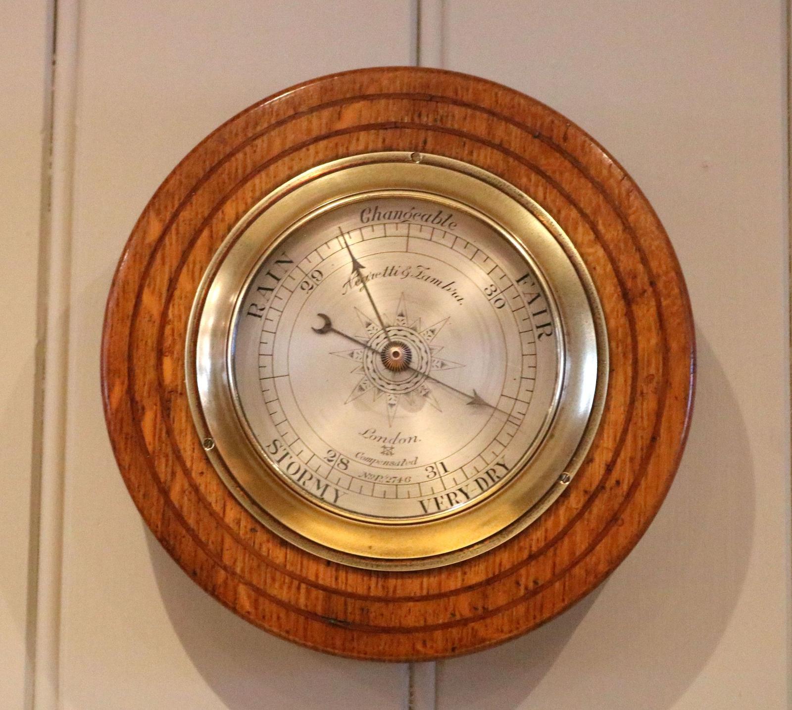 Circular Oak Aneroid Barometer (1 of 9)