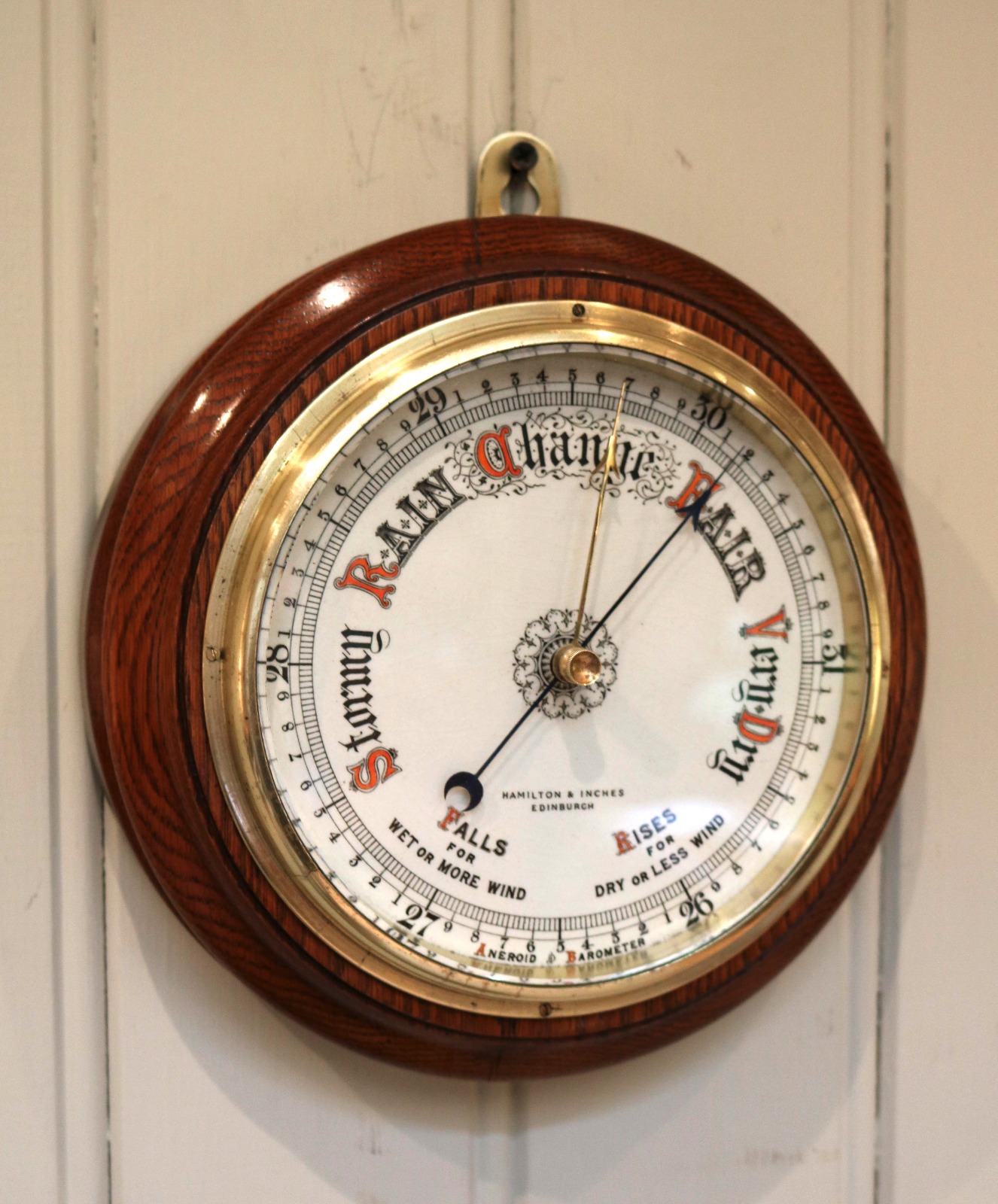 Circular Oak Aneroid Barometer c.1910 (1 of 1)