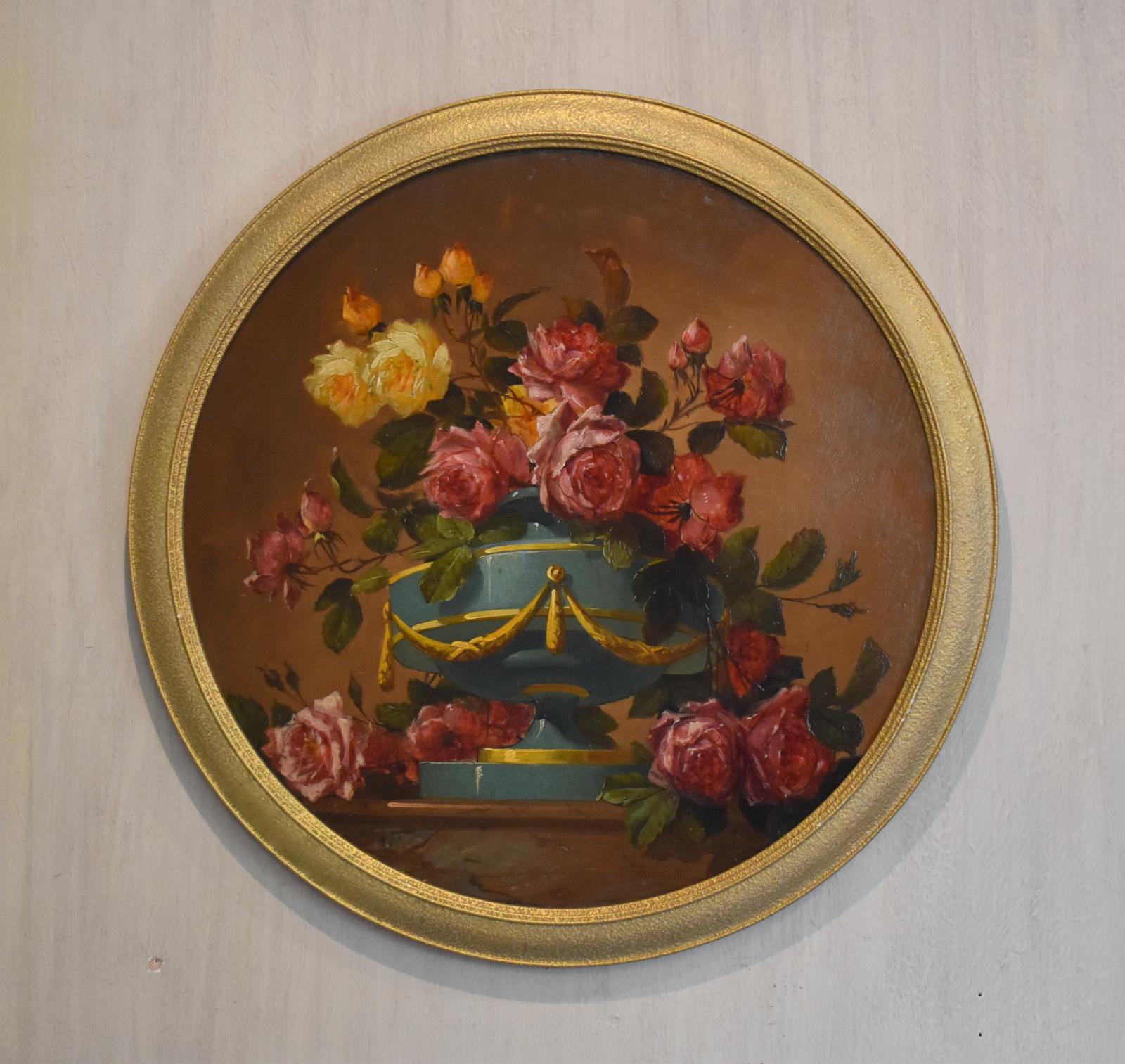 Circular Still Life Oil Painting of Roses