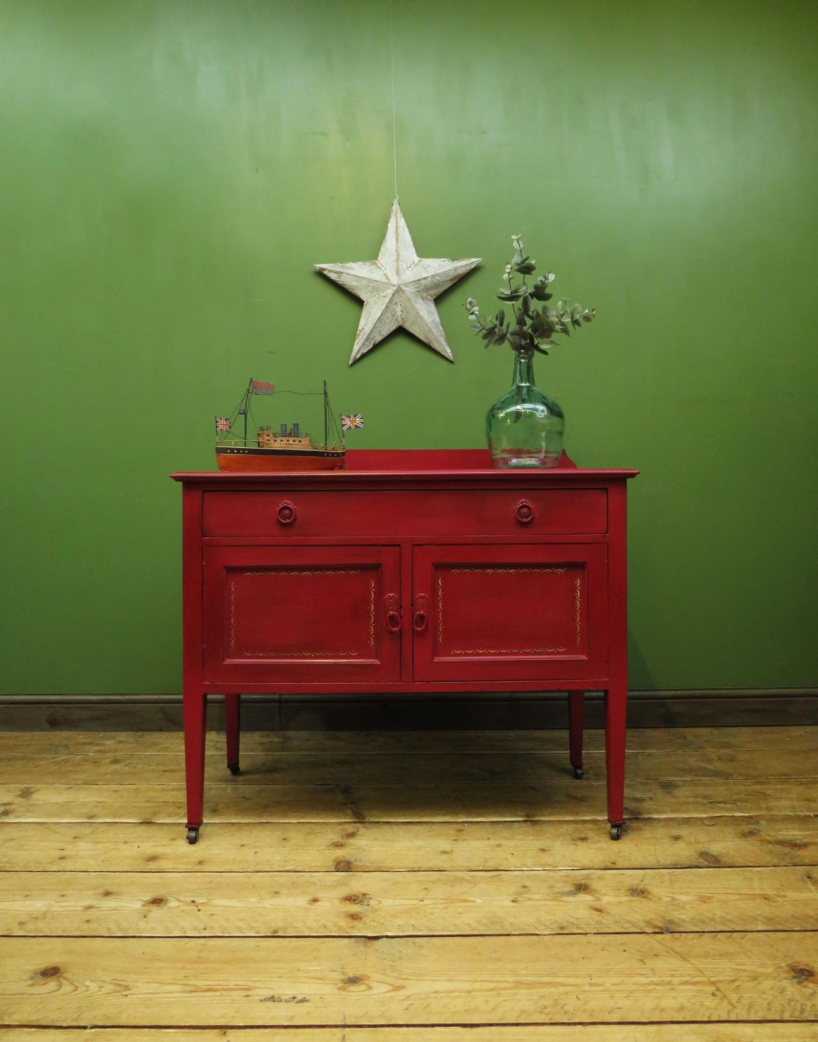 Circus Themed Painted Red Washstand Cabinet with Star to Top