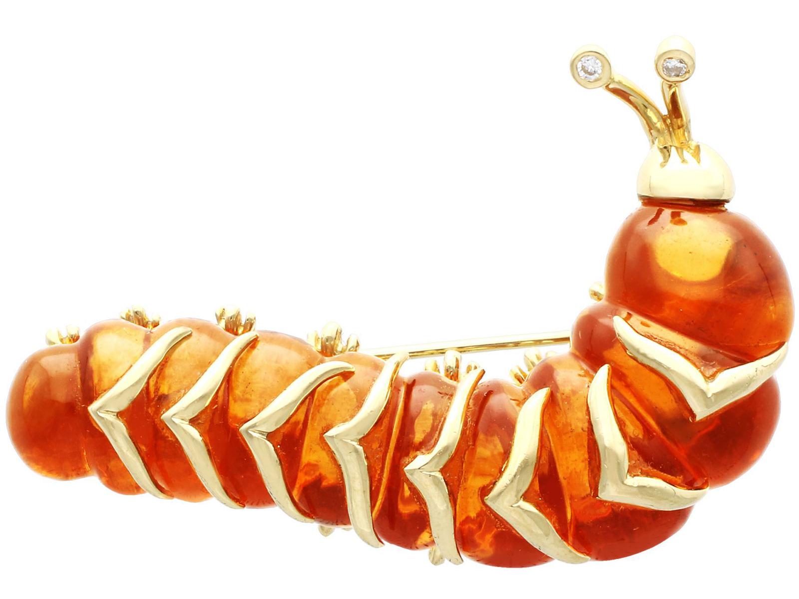 Citrine & Diamond 18ct Yellow Gold Caterpillar Brooch c.1950 (1 of 9)