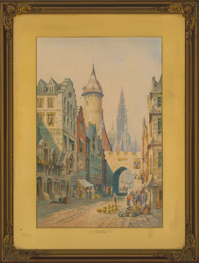 C.J. Keats RBA - Signed Late 19th Century Watercolour, Antwerp Street Scene