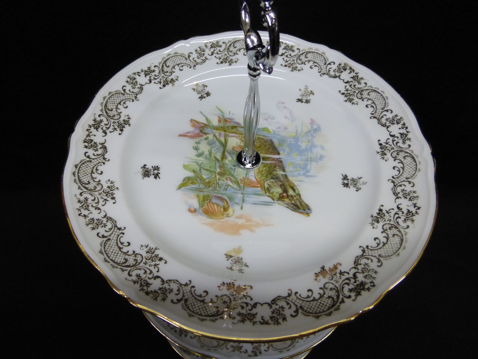 Classic 3 Tier French Limoge Soushi Stand with Gold Leaf Edging