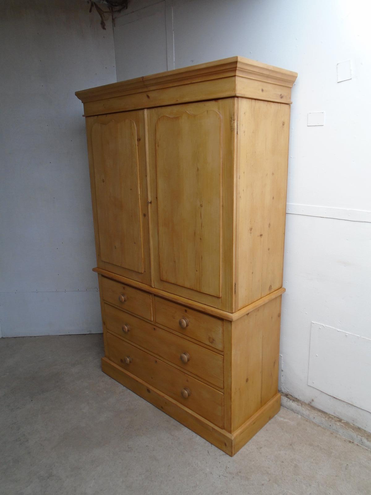 Classic English Waxed 2 Piece Antique Pine Victorian Wardrobe / Linen Press