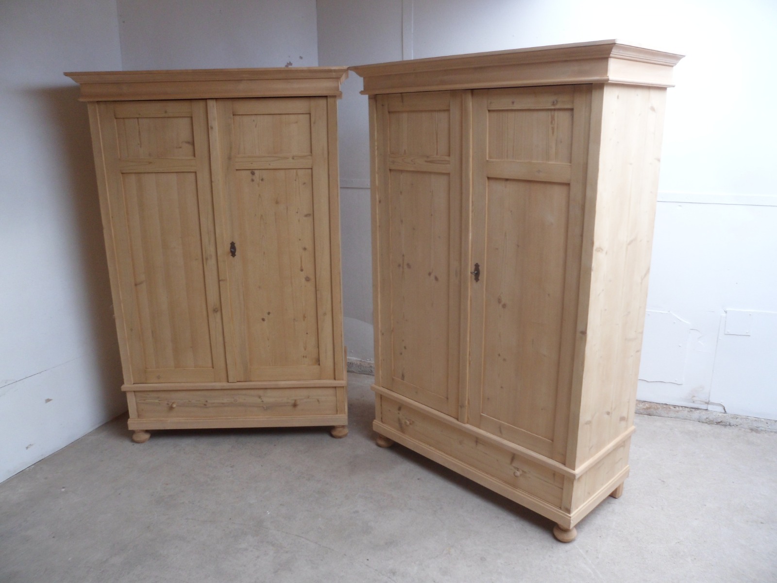 Classic Pair of Old Pine Knockdown Wardrobes to wax / paint