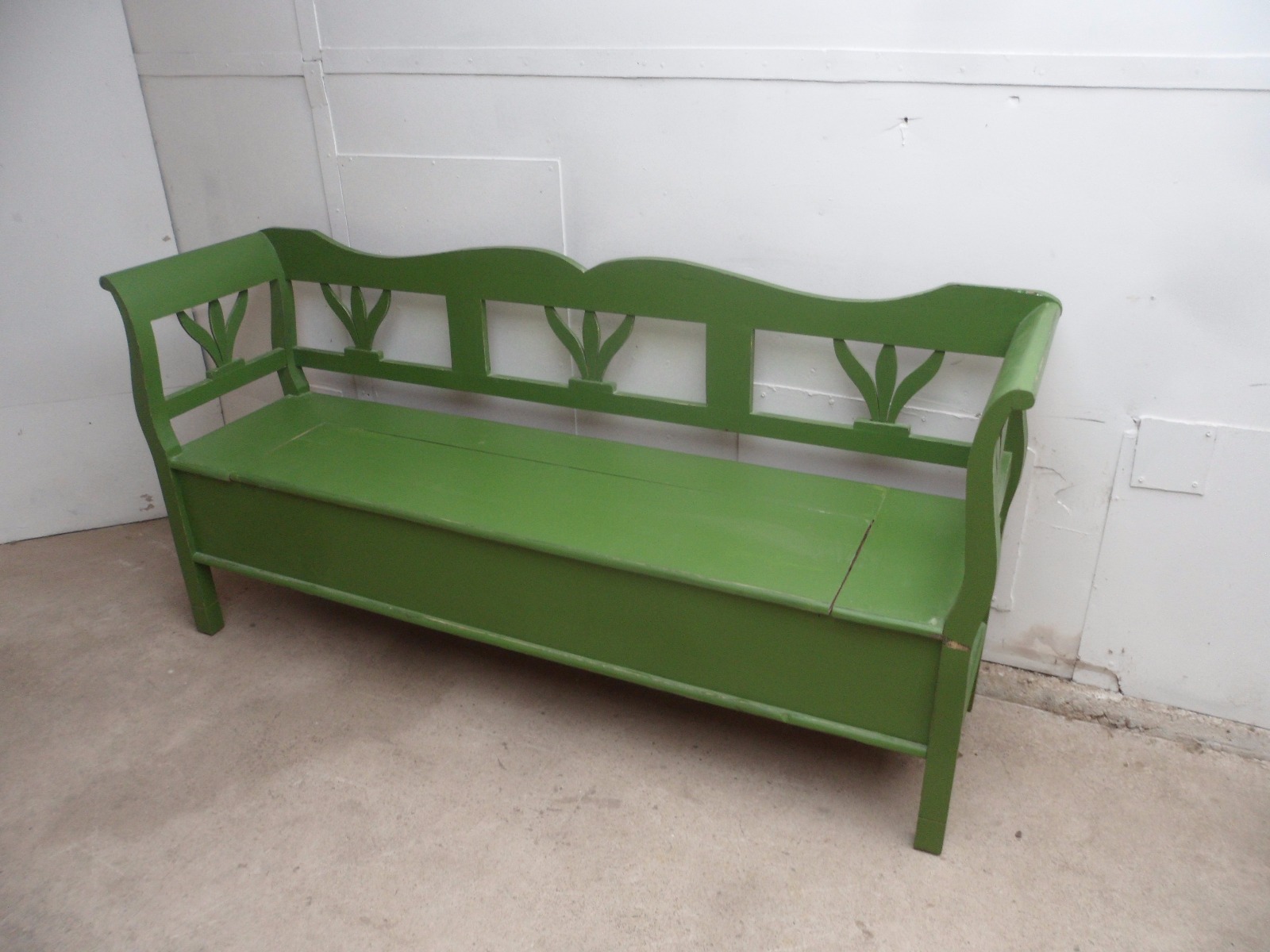 Classic Pine 3 Seater Painted Green Box Settle / Bench c.1920