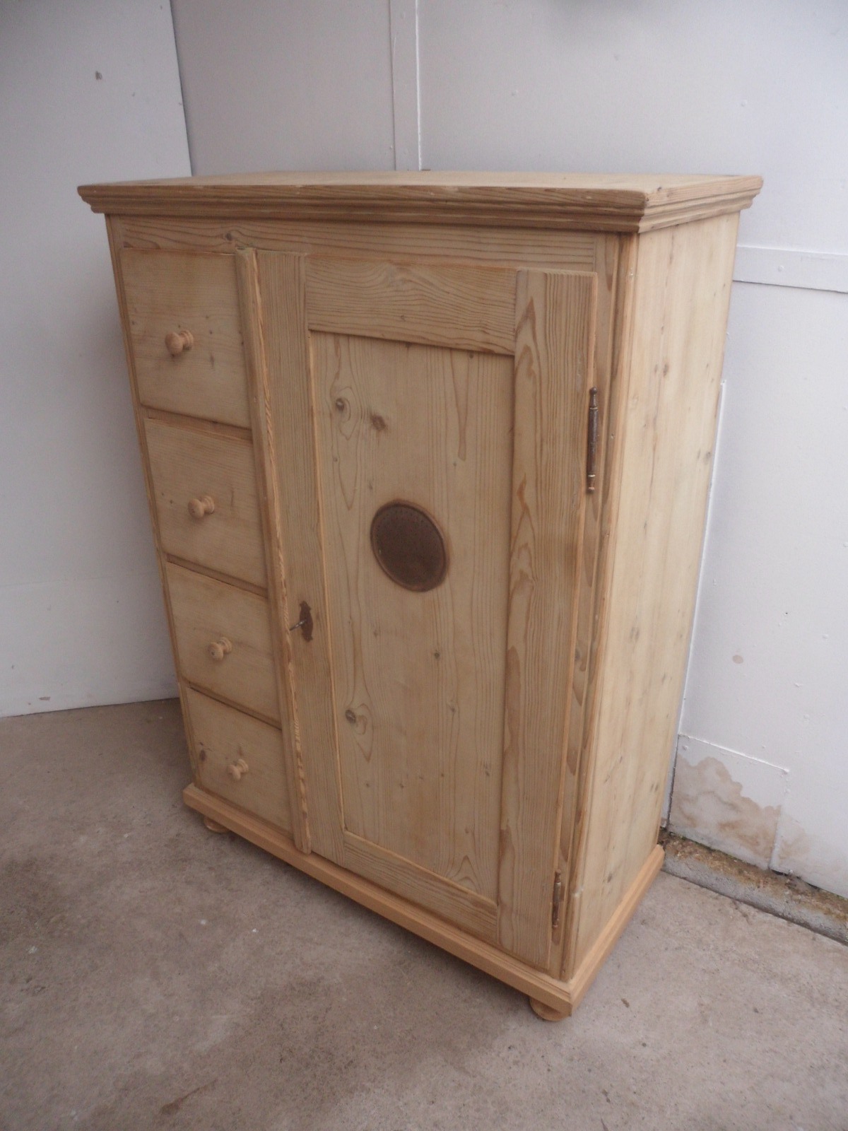 Classic Tidy 4 Drawer 1 Door Old Pine Kitchen / Food Cupboard to wax / paint