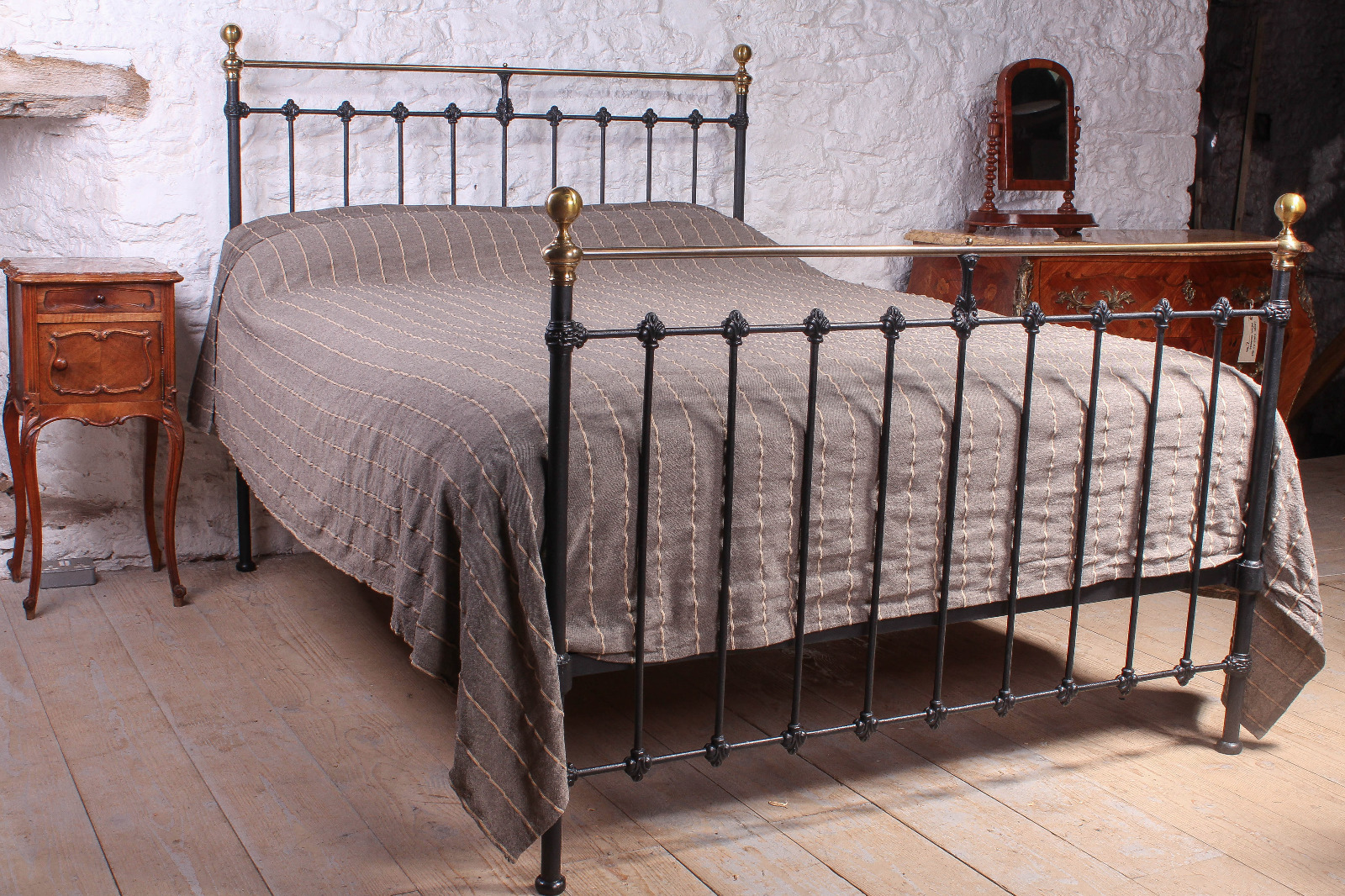 Classic Victorian Black & Aged Brass King Size Bed