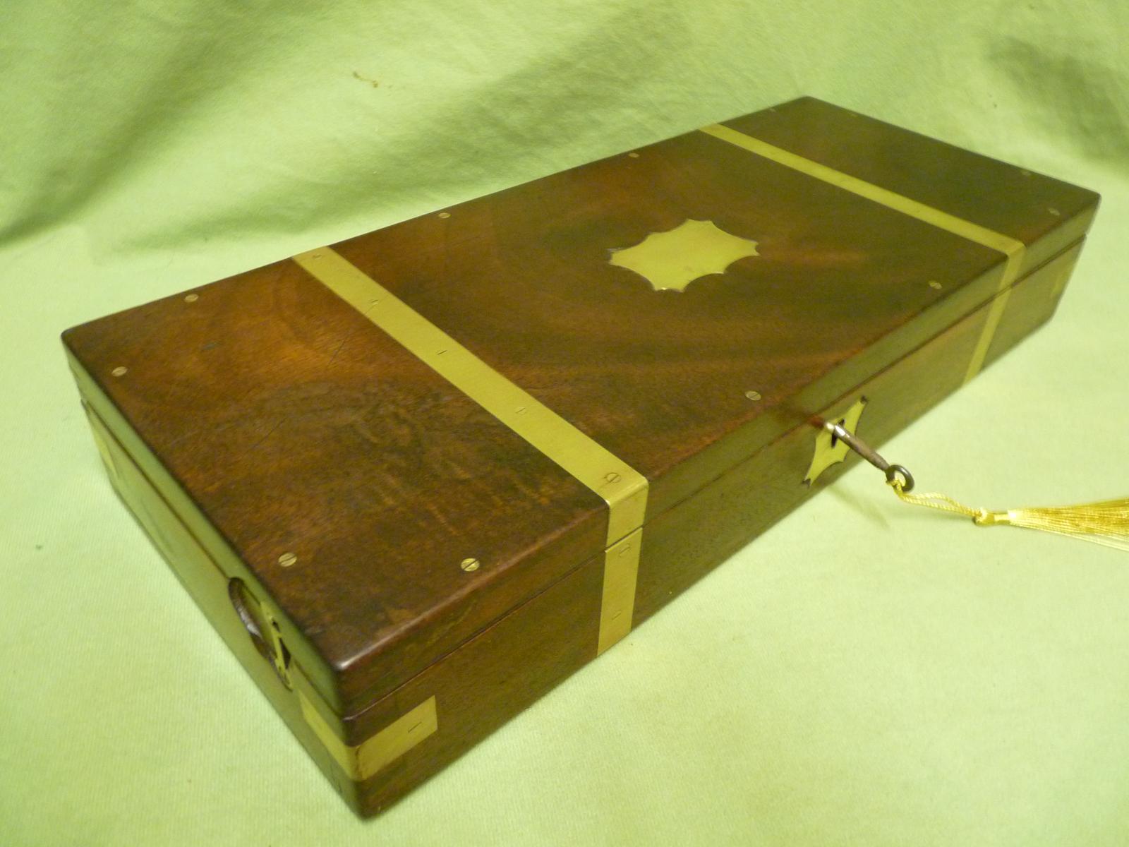 Classic Victorian Solid Mahogany Brass Bound Box + Tray c.1895