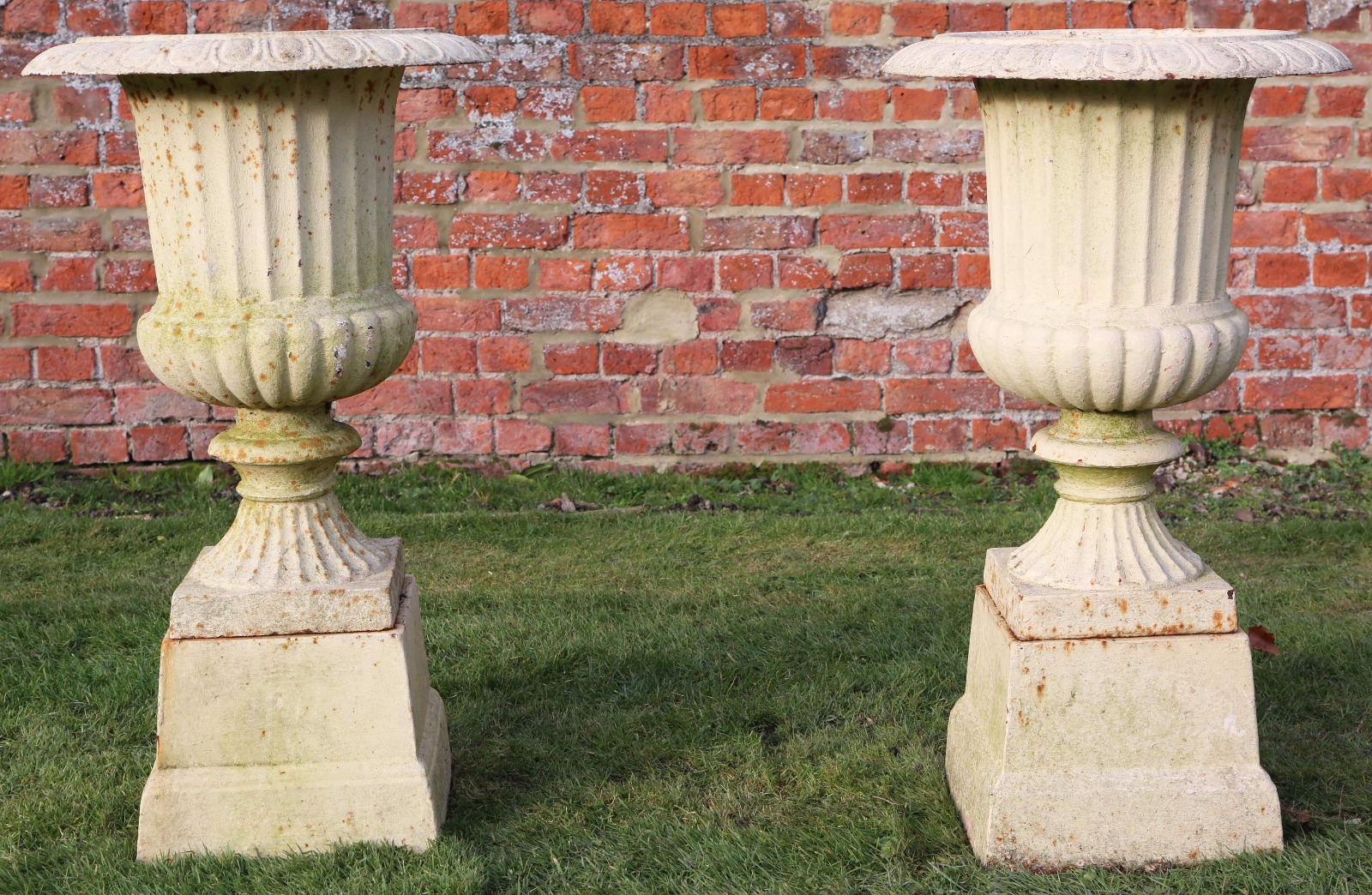 Classical Pair of Cast Iron Planters Urns On Plinths (1 of 8)