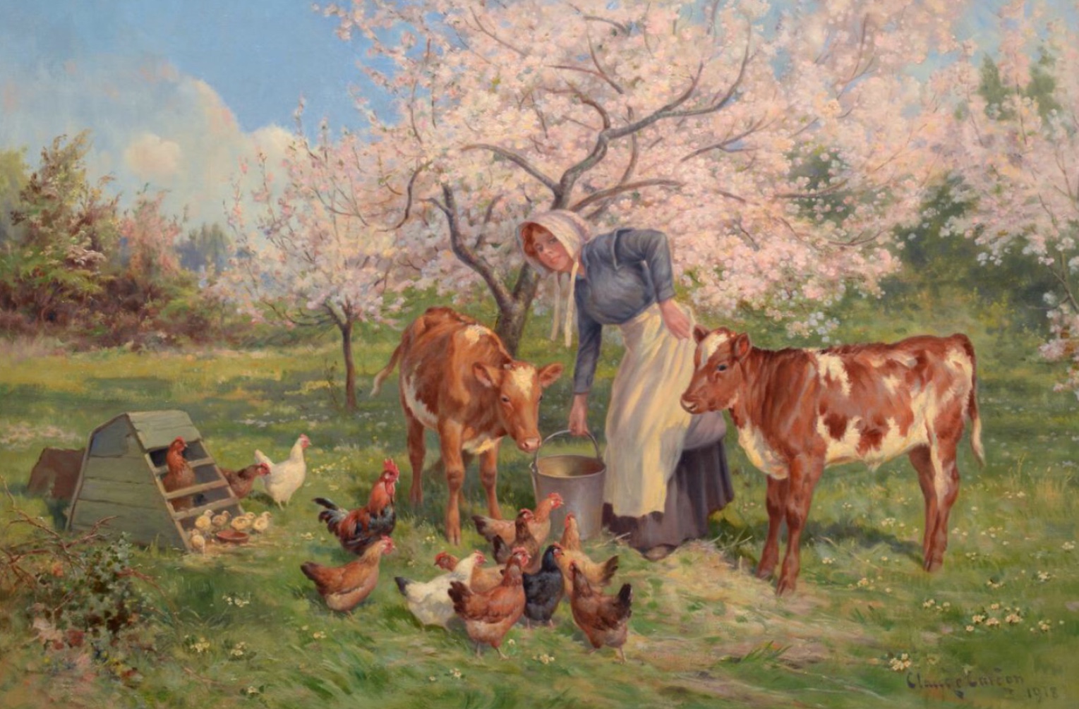 Claude Cardon Oil Painting ‘Feeding Time with the Calves’