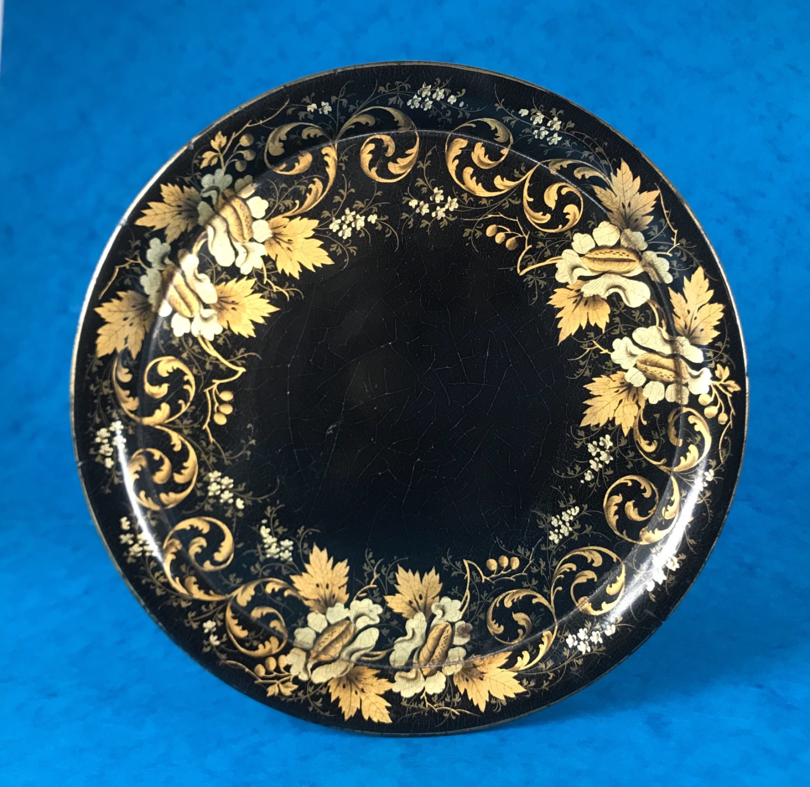 Clay Black and Gold Gilt 1820 Georgian Painted Papier-Mâché Tray