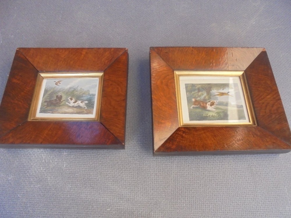 Close Matching Pair of Early 19th Century Pollard Oak Framed Shooting Prints