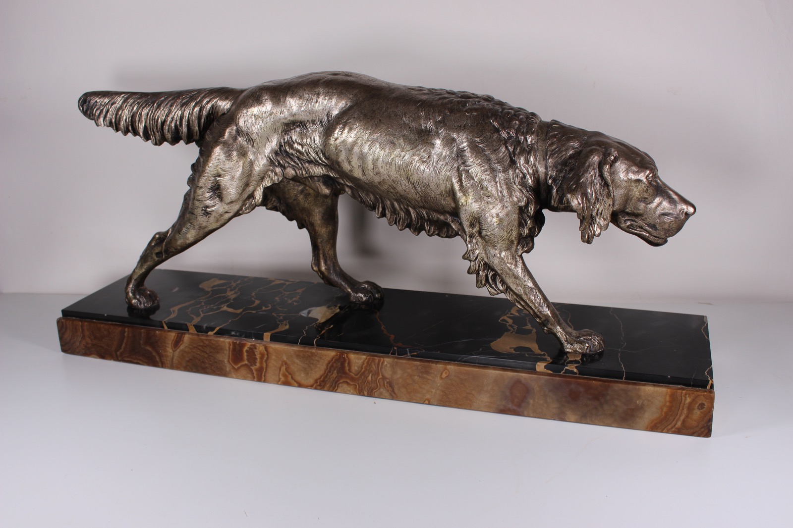 Clovis Edmond Masson Silvered Spelter Retriever