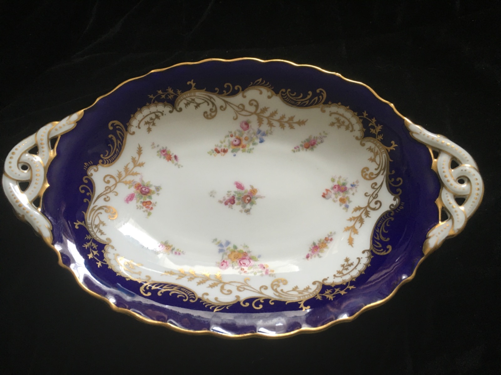 Coalport Cobalt Blue Scattered Flowers Oval Dish c.1891