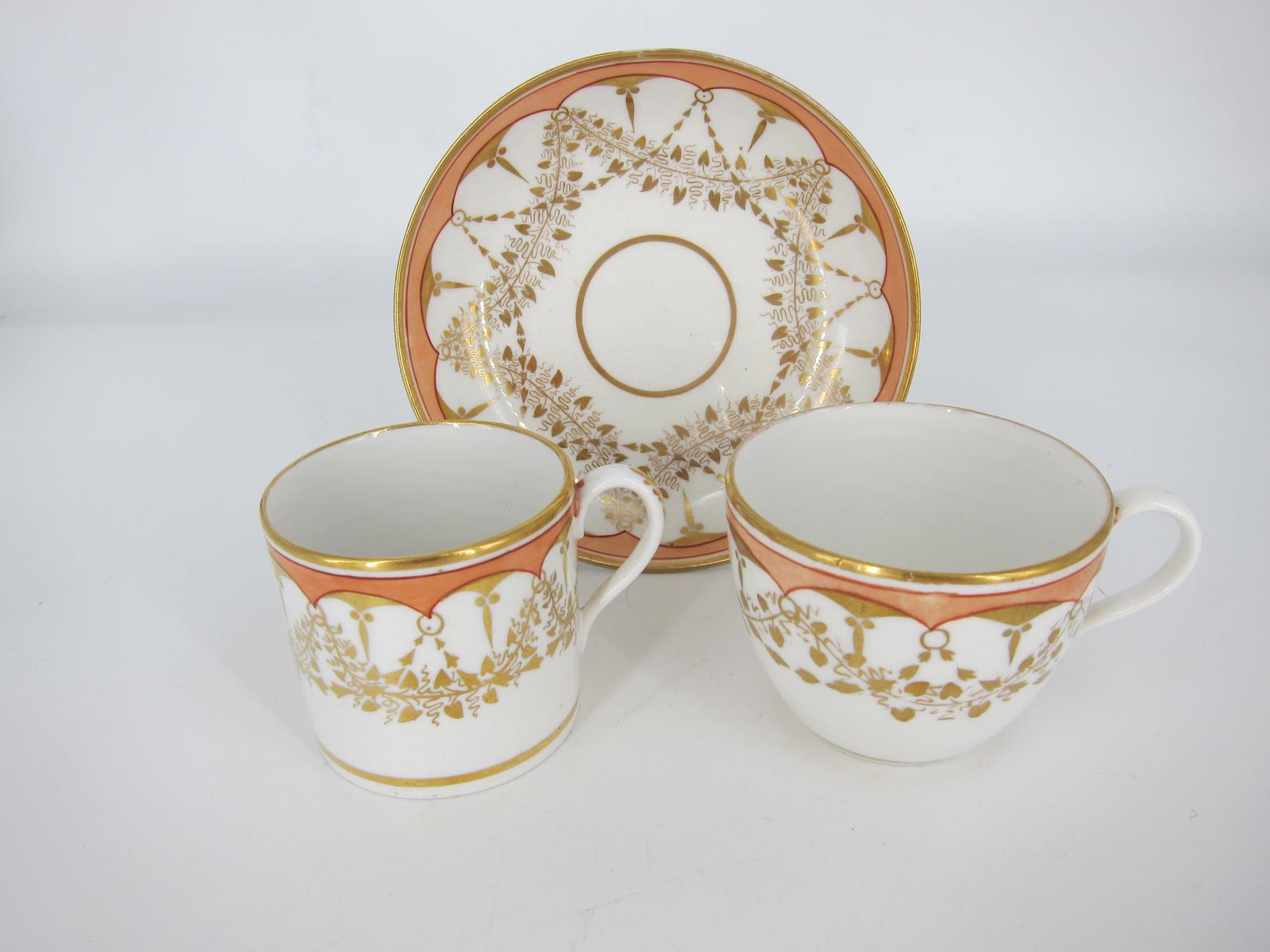 Coalport Porcelain Apricot Ground Trio & Gilt Swags