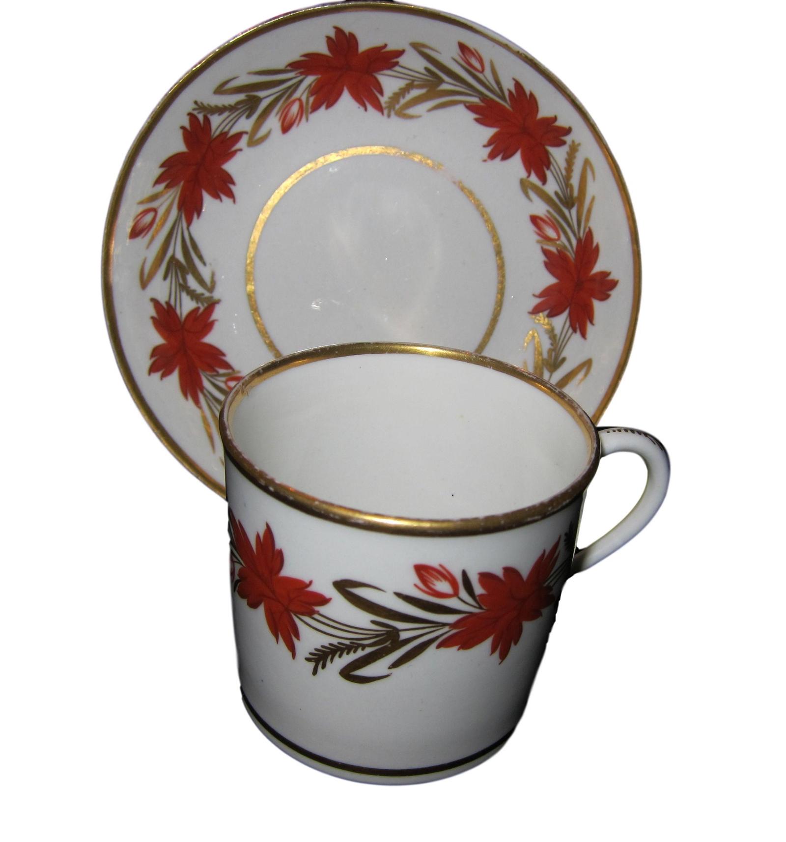 Coalport Porcelain Coffee Can & Saucer Decorated with Red Leaf Band