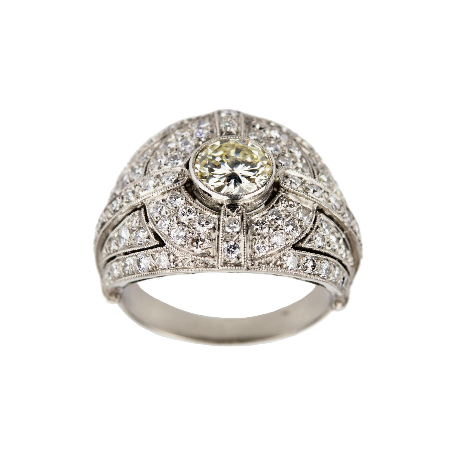 Cocktail Ring in Platinum with Diamonds - Art Deco Style - 20th Century