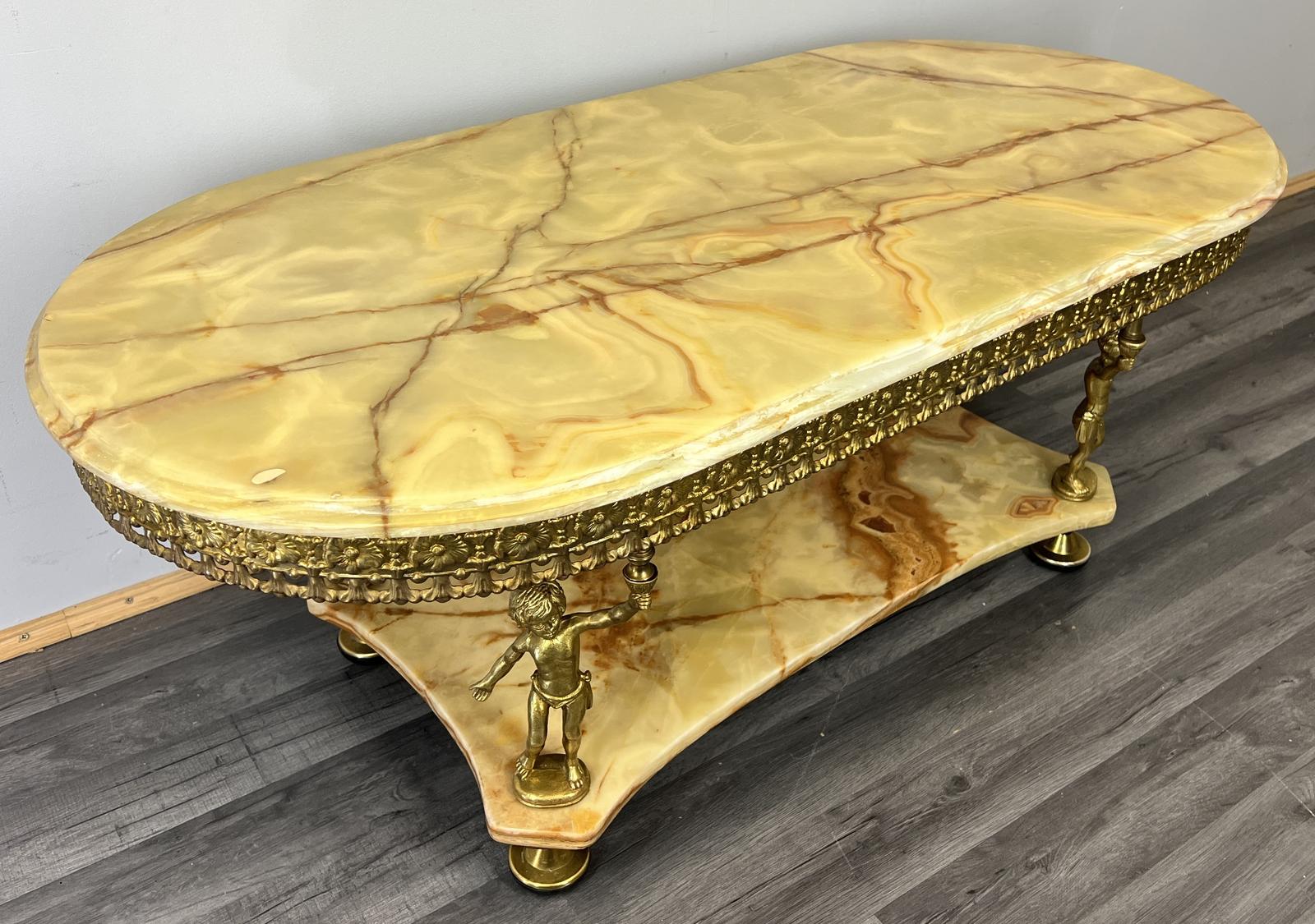 Coffee Table Vintage French Onyx Brass Figural Ornate Marble Top Table