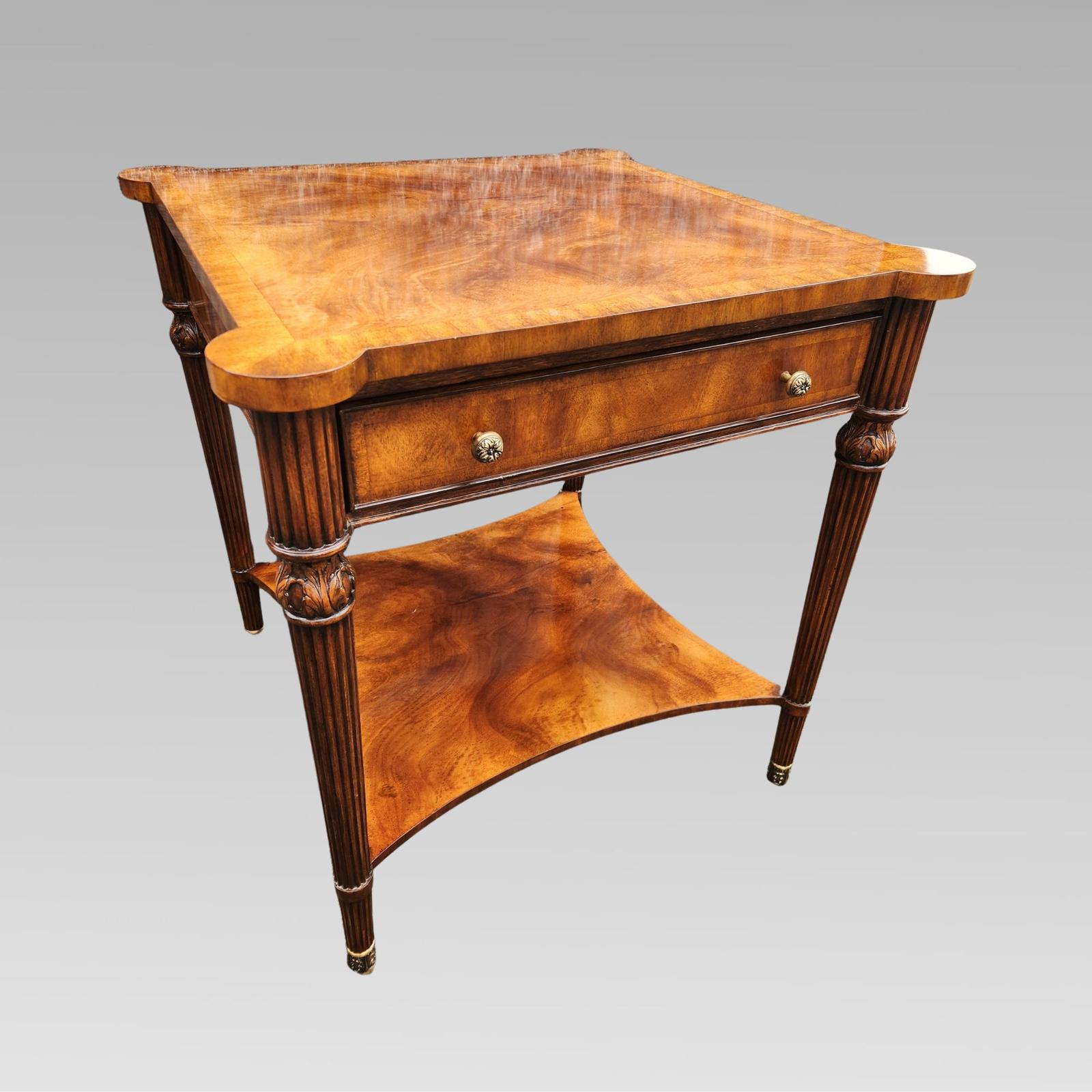 Coffee Table Vintage Walnut & Mahogany Crossbanded Lamp or Coffee Table w/ Drawer & Gilt Metal Feet