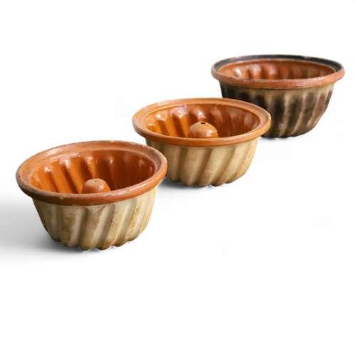 Collection of 3 French Glazed Stoneware Cake Moulds c.1900