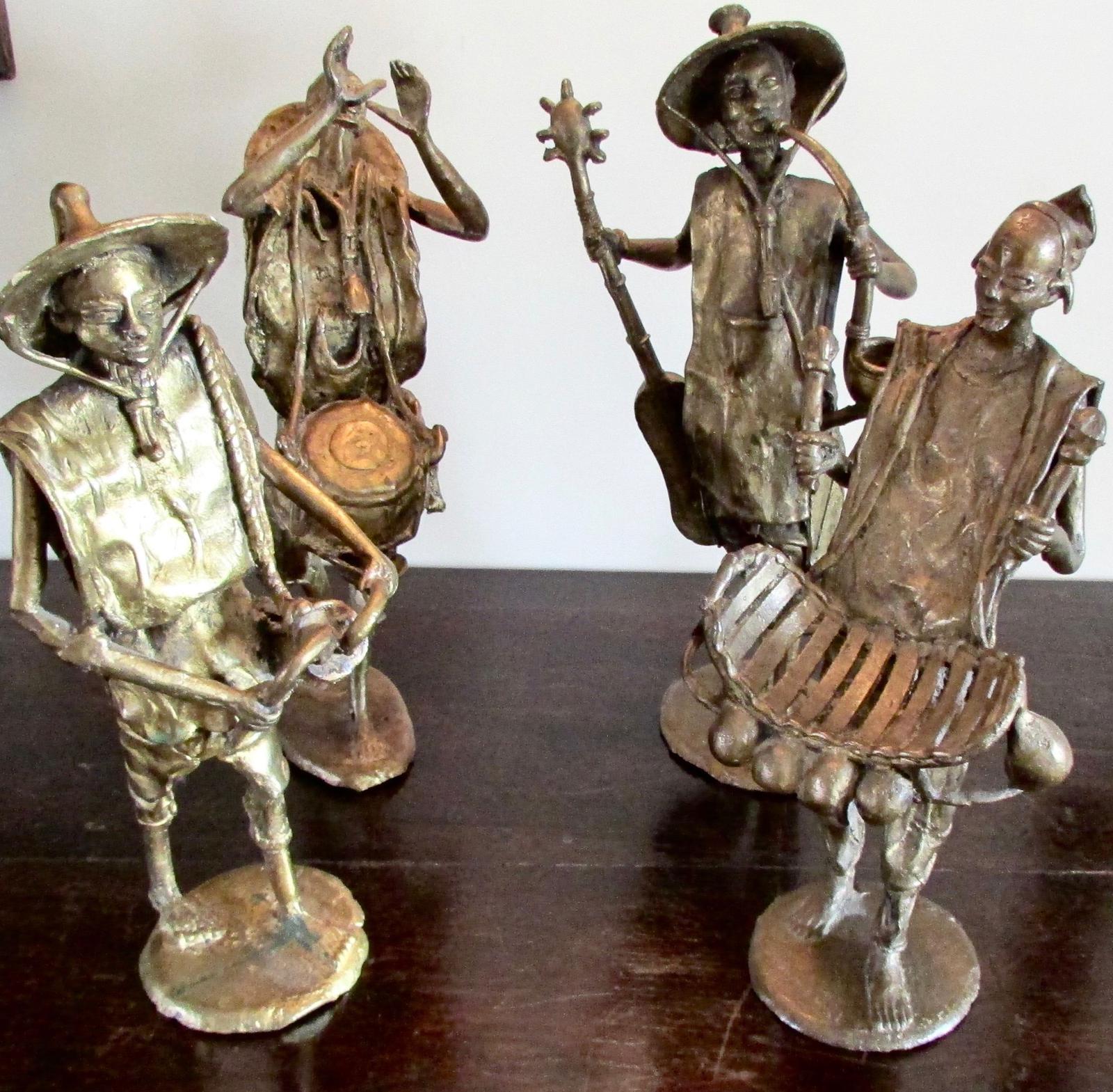 Collection of Four Large  African Bronze Musicians (1 of 5)