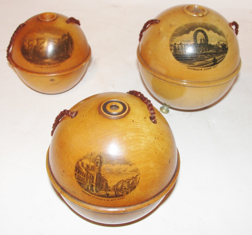 Collection of three Victorian Mauchline Ware String Balls c.1870
