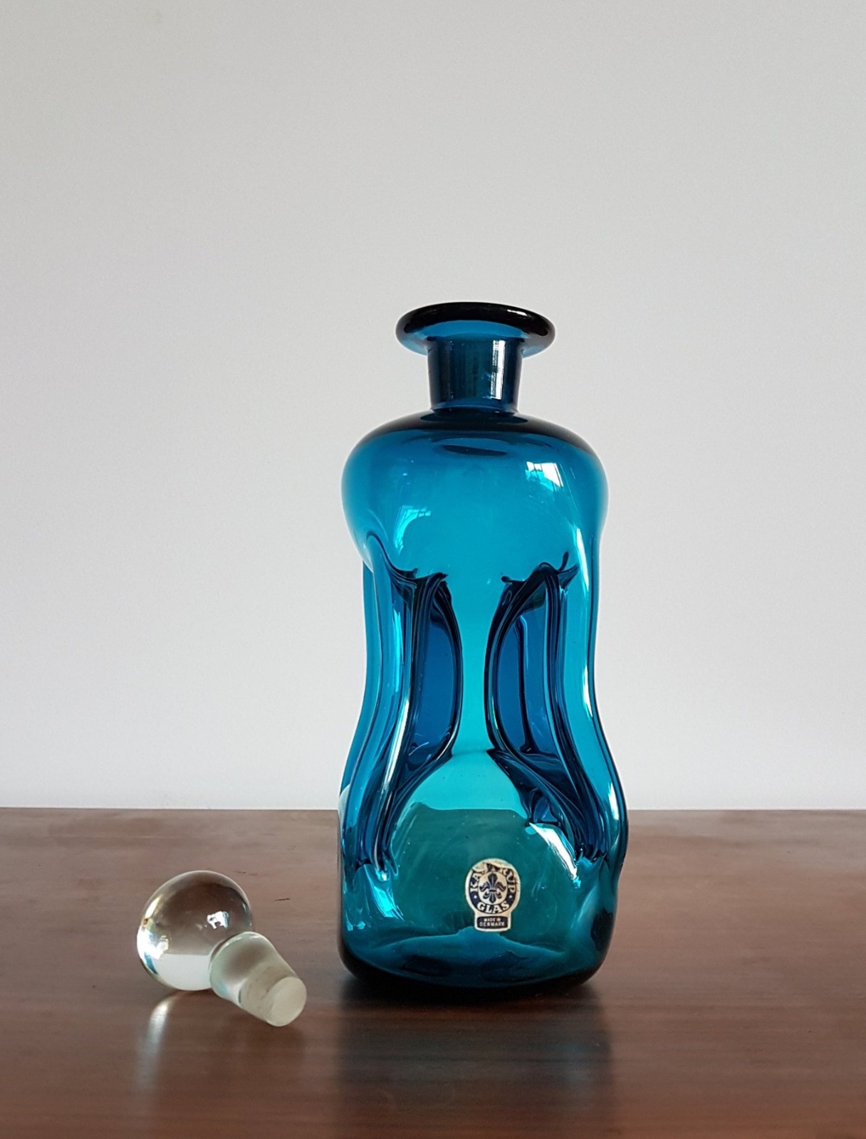 Collectors: Danish Pre 1965 Kastrup Glas (Holmegaard) 'Kluk Kluk' Blue Glass Decanter by Jacob E Bang