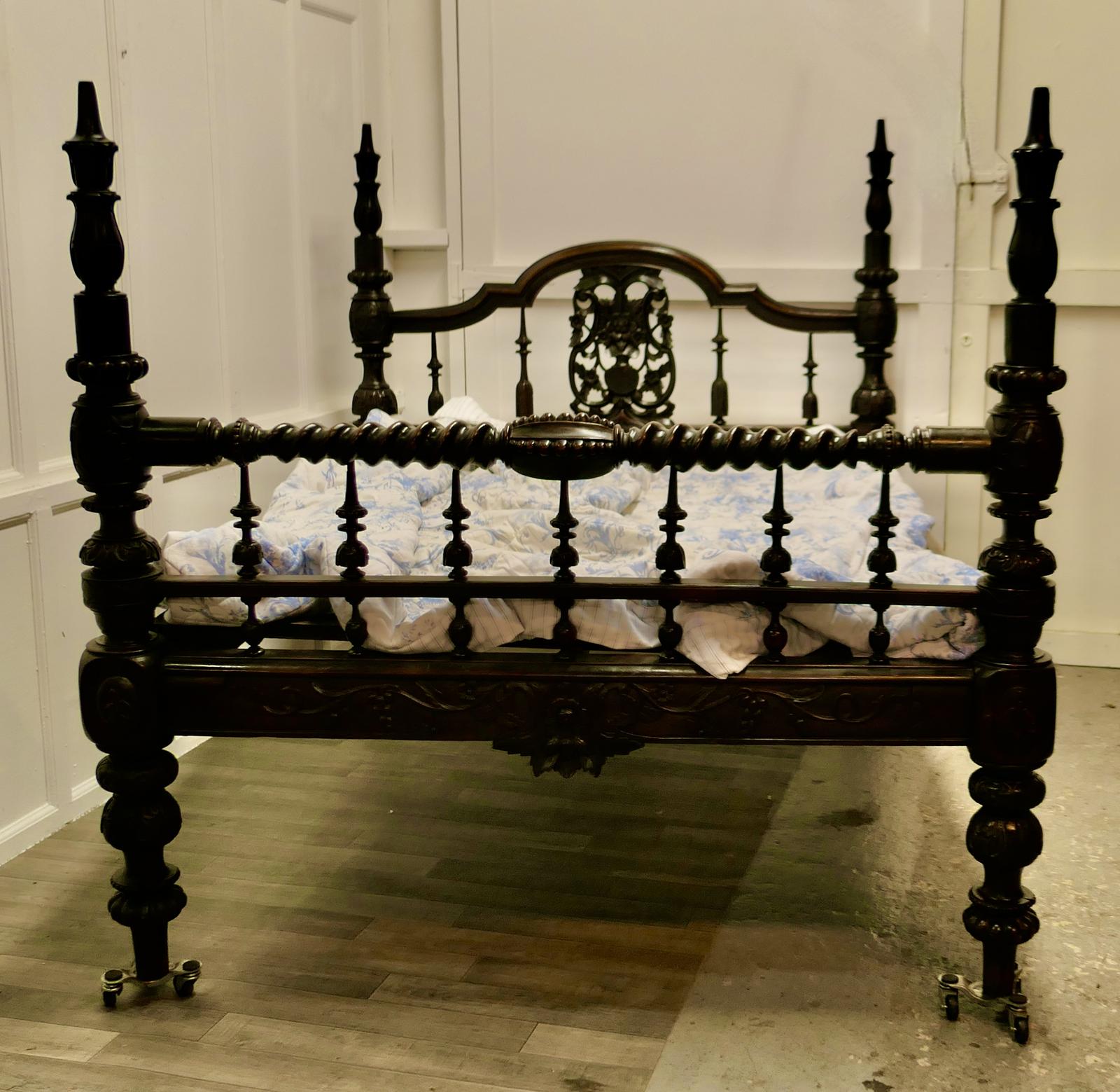 Colonial Raj Double Bed, Anglo Indian Carved Double Bed