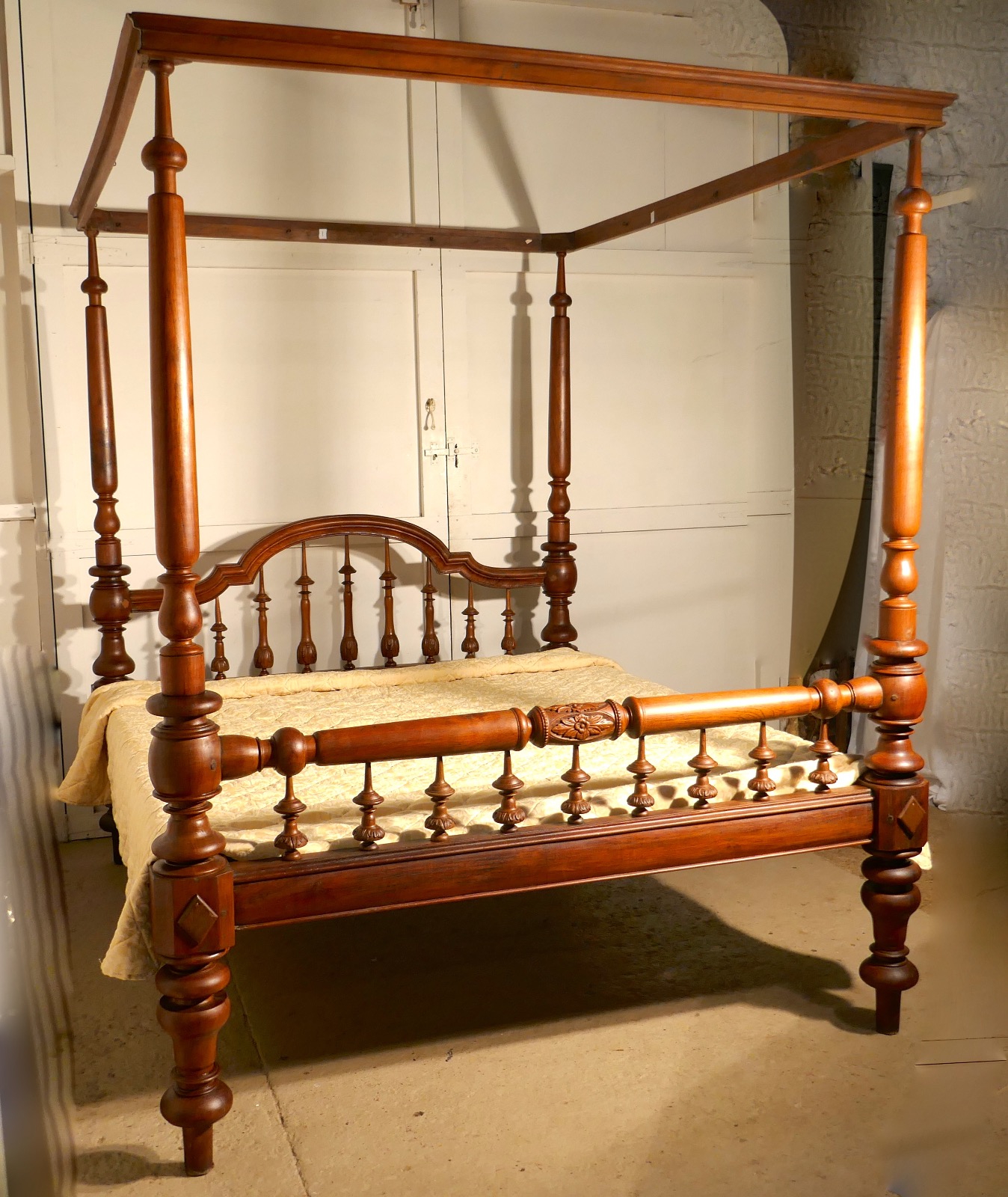 Colonial RAj Four Poster 6Ft Bed, Anglo Indian Carved 4 Poster Large Double Bed