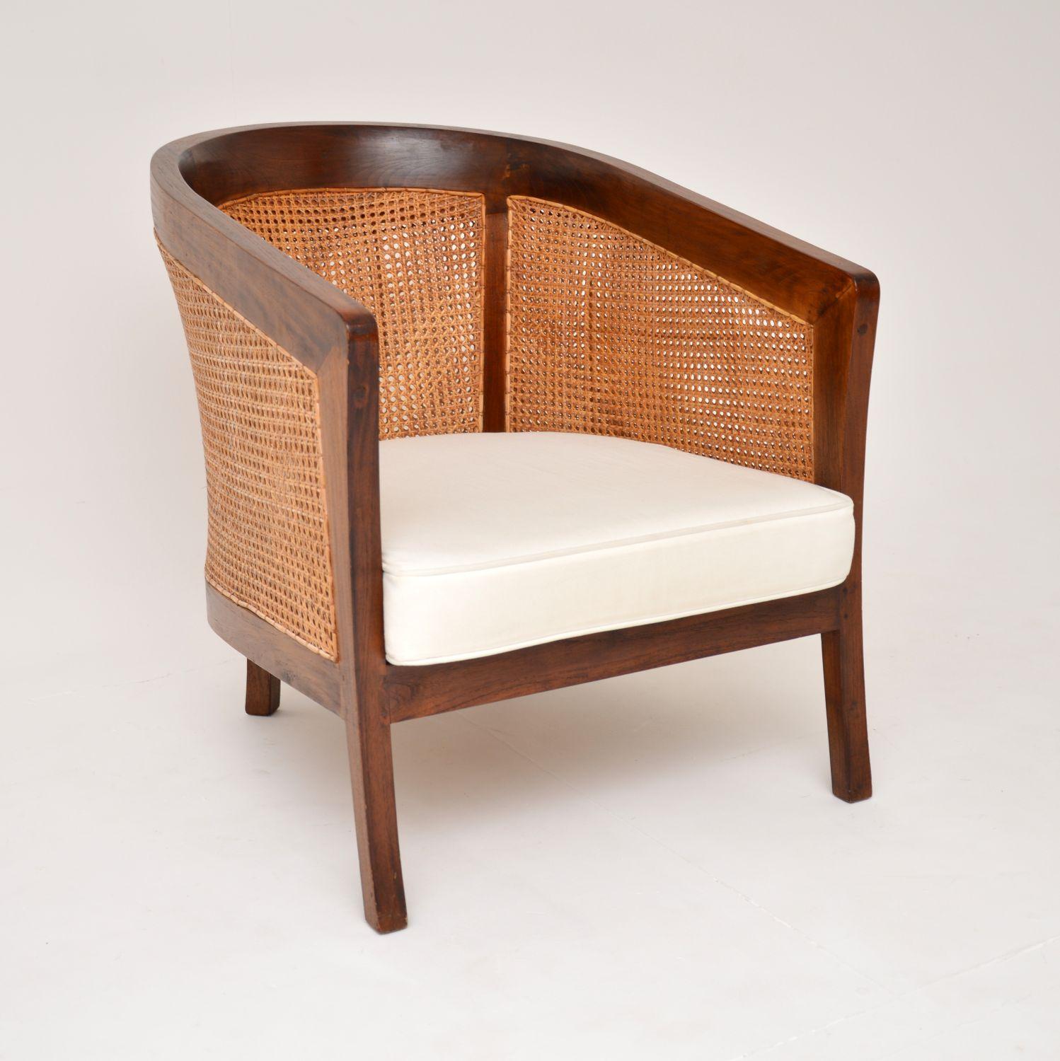 Colonial Style Solid Teak & Cane Armchair