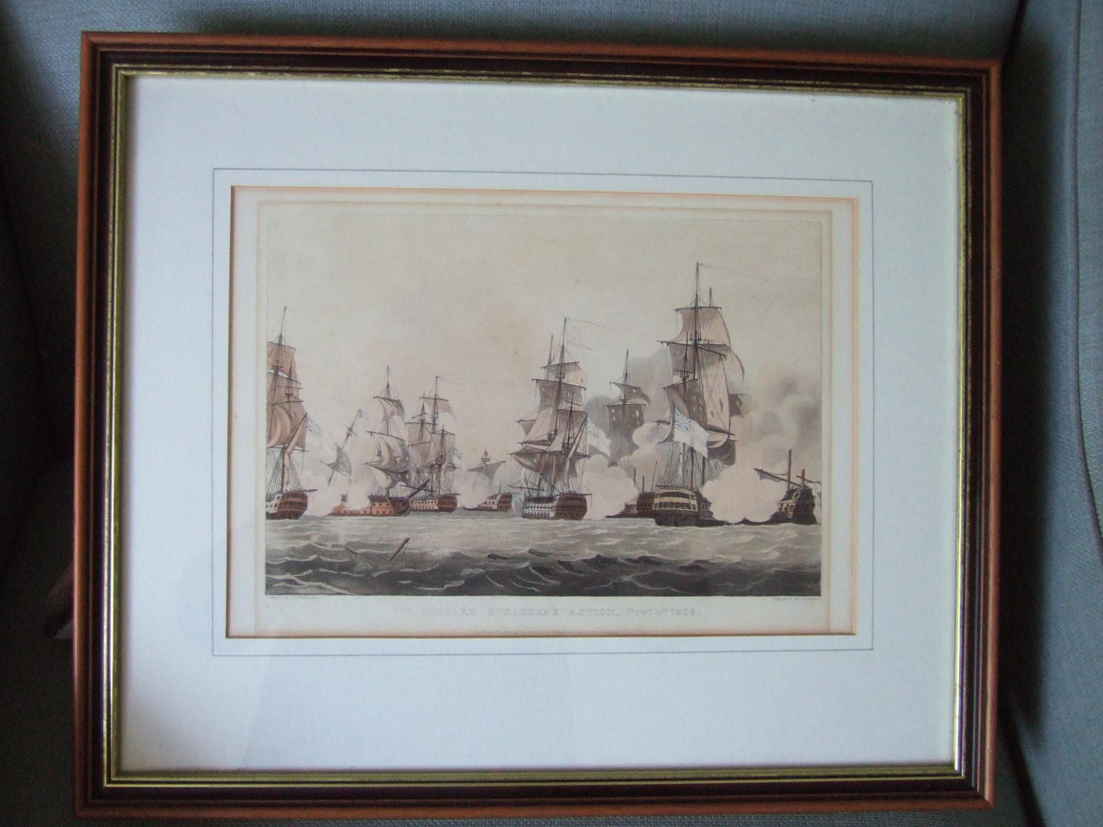 Coloured Aquatint Entitled "Sir Richard Strachan's Action Nov 4th 1805" from the Volume "The Naval Achievements of Great Britain from the Year 1793-1817" Published by James Jenkins 1817 (1 of 6)