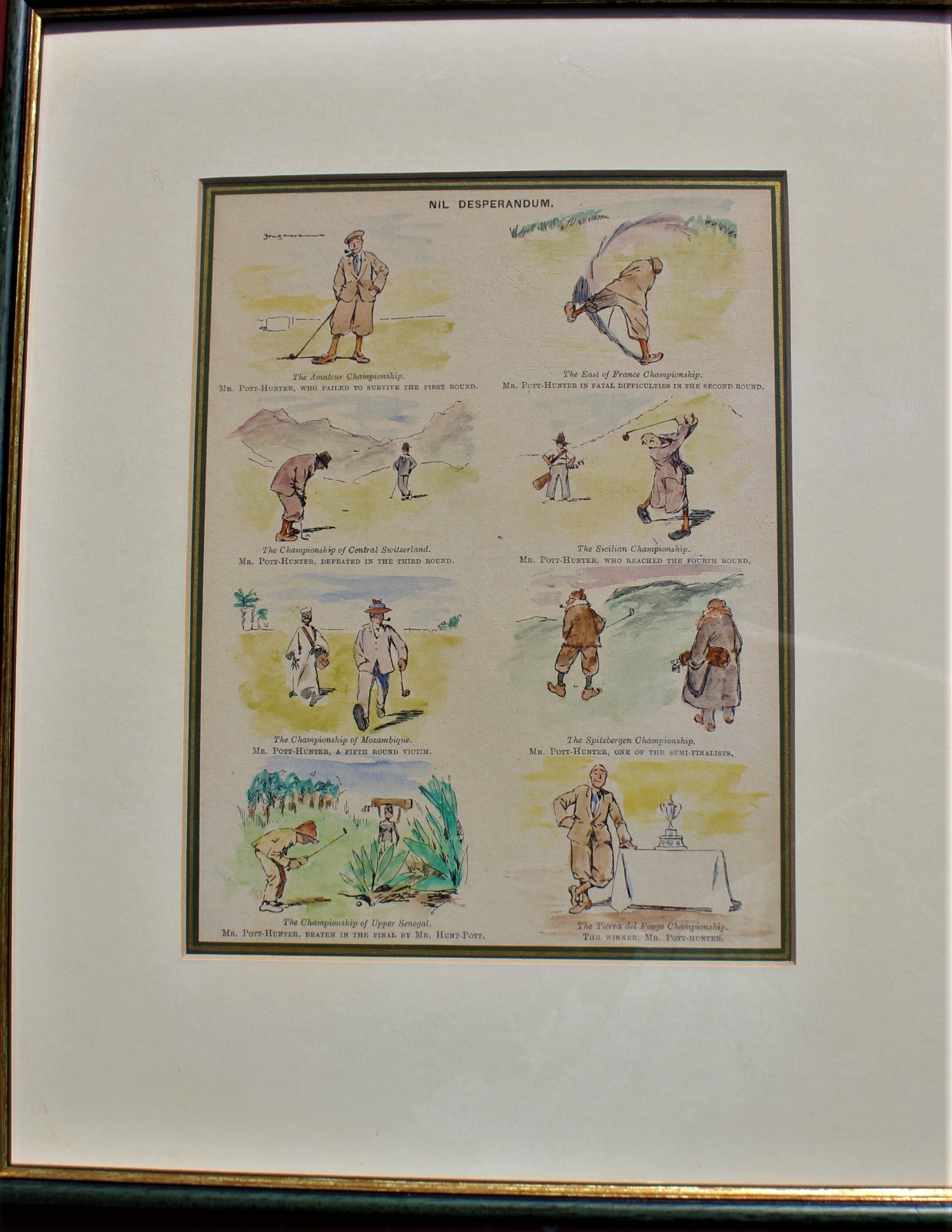 Coloured Humorous Golfing Print 'Nil Desperandum'