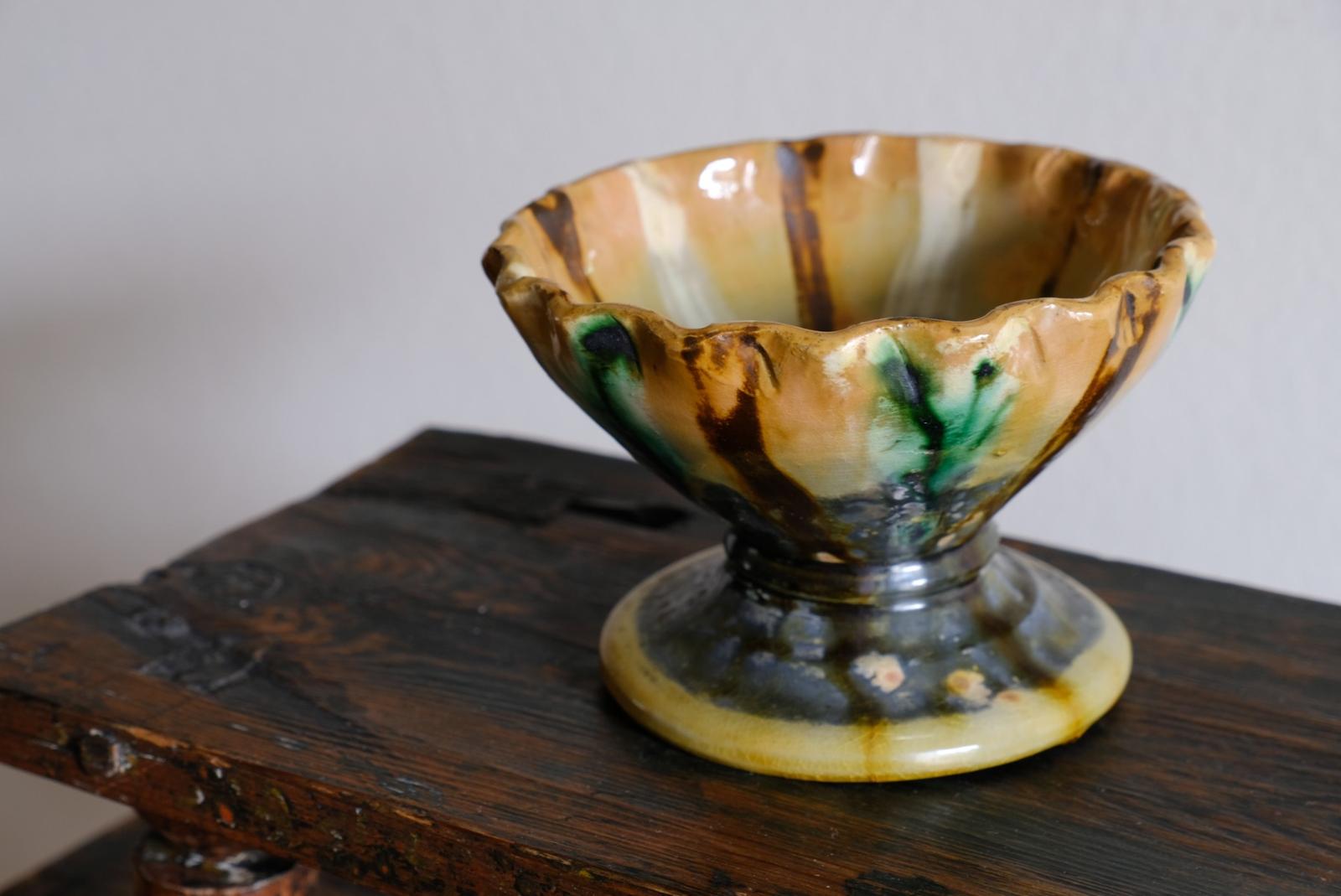 Colourful Studio Pottery with a Stripy Fluted Cup